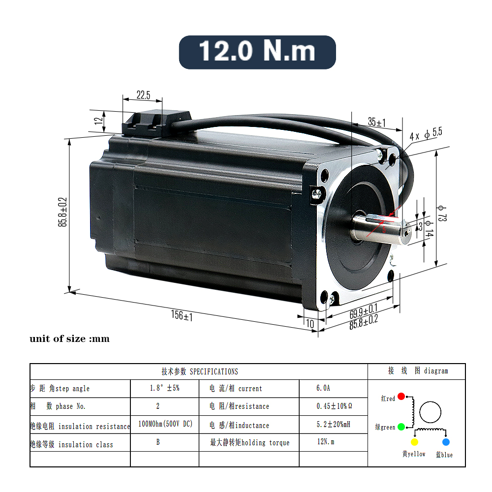 | Holding torque: | 12N /8.5N/4.5N | model: | Nema34 + HBS860H/HBS86H |