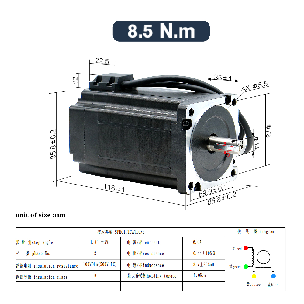 | Step angle (degrees): | 1.8°±5% | current: | 6A |