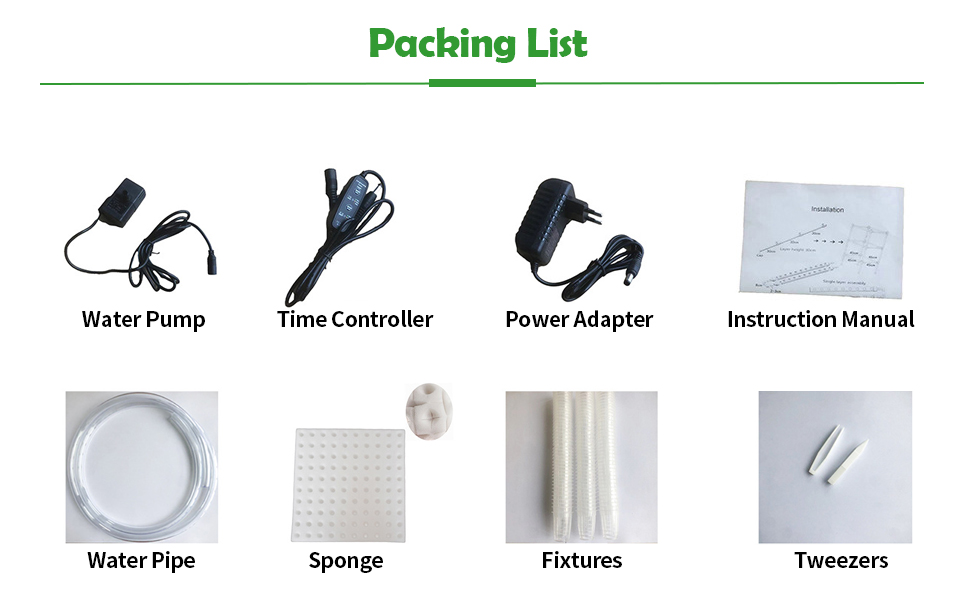 * This PVC hydroponic planting system kit has a timed cycle system; the default setting of the timer allows the pump to work for 5 minutes every 30 minutes to achieve the nutrient film technology; the cycle mode can also be set manually or automatically according to needs; not only makes the pump more durable, Save nutrient solution and make vegetables grow better
