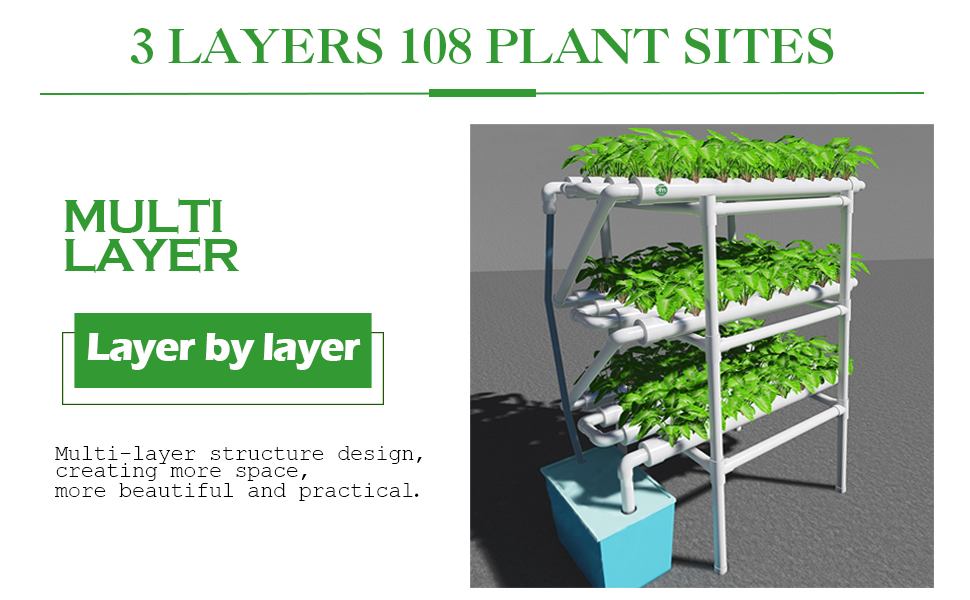 Hydroponic Planting System, 3 Tiers 108 Planting Points Vegetable Tools Planting Kit Hydroponic Planting Equipment with Water Pump, Pump Timer, Nesting Basket