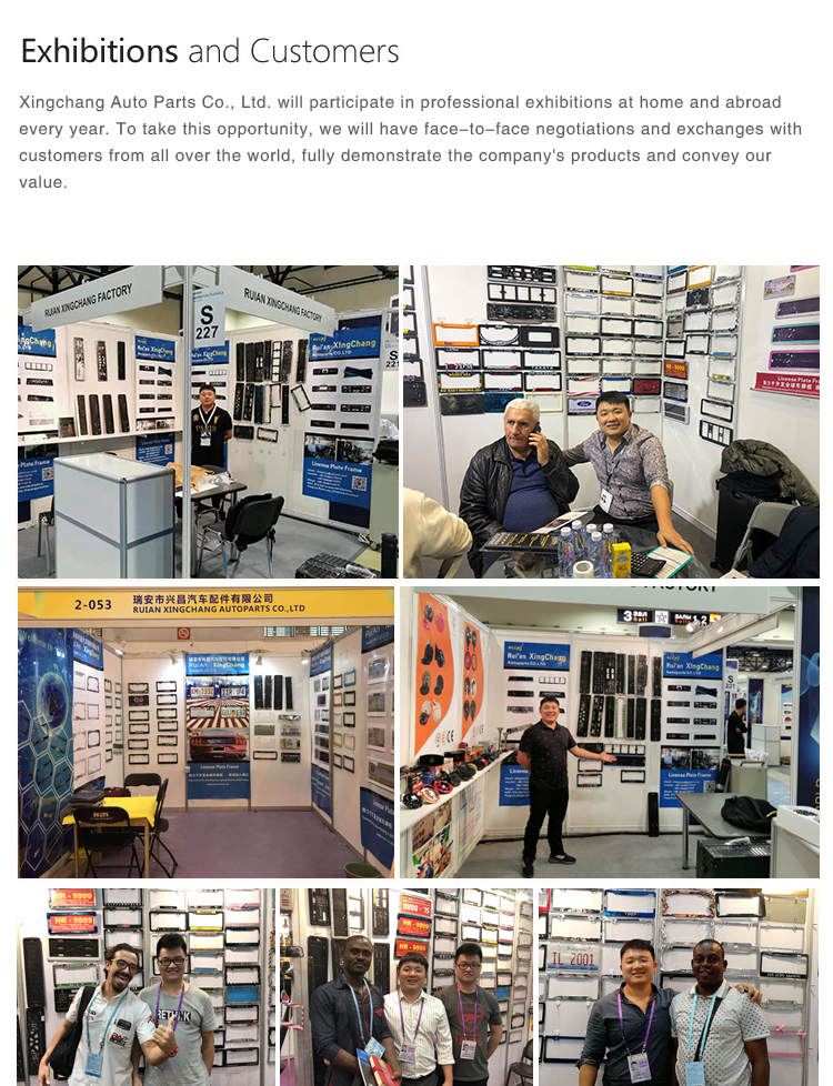 Ruian Xingchang Auto Parts Co., Ltd. is located in Tangxia, Ruian, China Auto Parts City. It is an enterprise specializing in the design, production, sales and after-sales service of personalized car license plate sets. Has its own excellent research and development, technology and production team. According to the changes in the situation of the automobile industry, continuously optimize and upgrade products, thus leading the trend of the entire fashion license plate holder market. The company's products are fine in workmanship, novel in style and beautiful in appearance. It is one of the more avant-garde manufacturers of personalized license plate frames in China. It will make unremitting efforts to provide customers with better products and services!