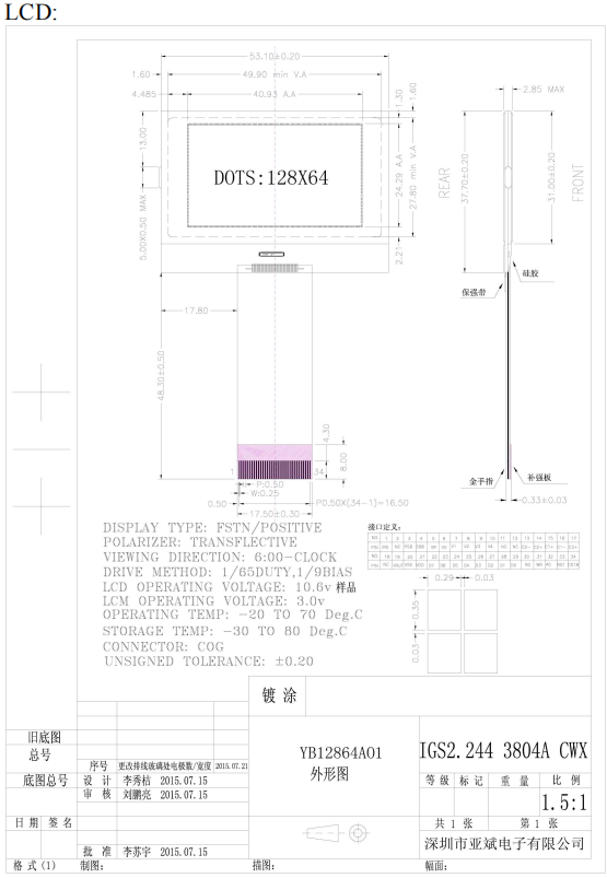 | Packaging Details: | 1. Paste QC label 2. Anti-static packaging 3. Bubble bag packaging 4. Boxed 128x64 stn cog lcd | Supply capacity: | 10000pcs 128x64 stn cog LCD monitor per week |