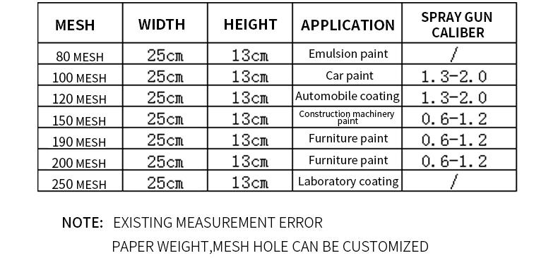 | Single package size: | 9X7.5X2 cm | Grid size: | 80/100/120/150/190/200/250 microns |