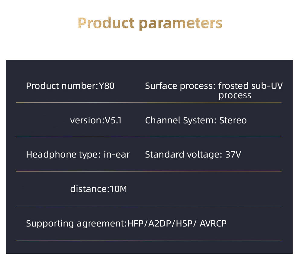 product weight | Single earphone: about 5g Charging box: about 60g | ||||||
