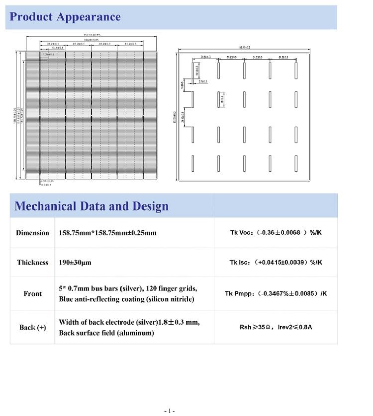 | product name: | Solar cell 158.75*158.75 | Supply capacity: | 100,000,000 watts per week |