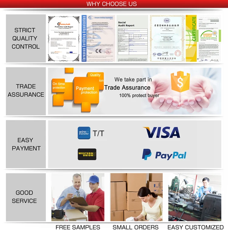 A: T/T,L/C,Western union,Paypal,etc. We also can make payment through alibaba trade assurance.The delivery date depends on your order. Delivery date is 7-25 days. If you need emergency products, we can speed up the production of the first arrangement.