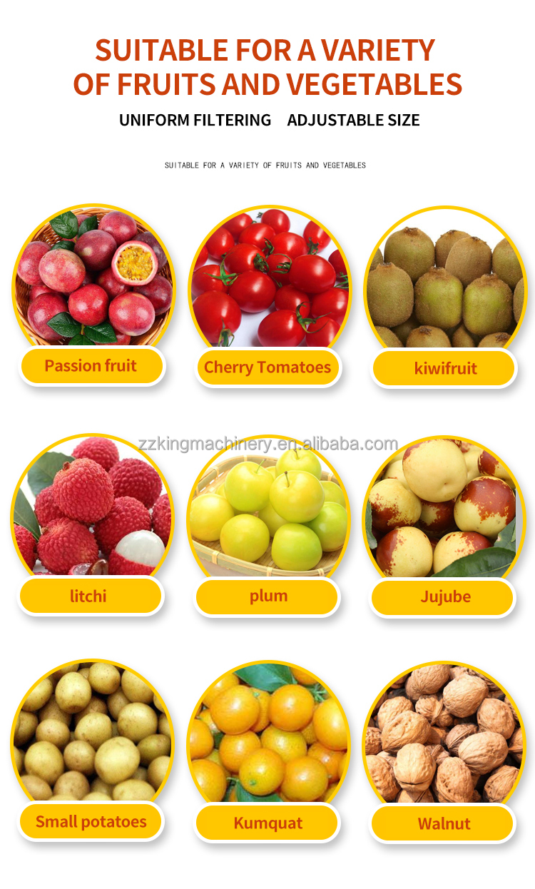 1> Specially designed for grading various round and oval fruits and vegetables according to different diameters.