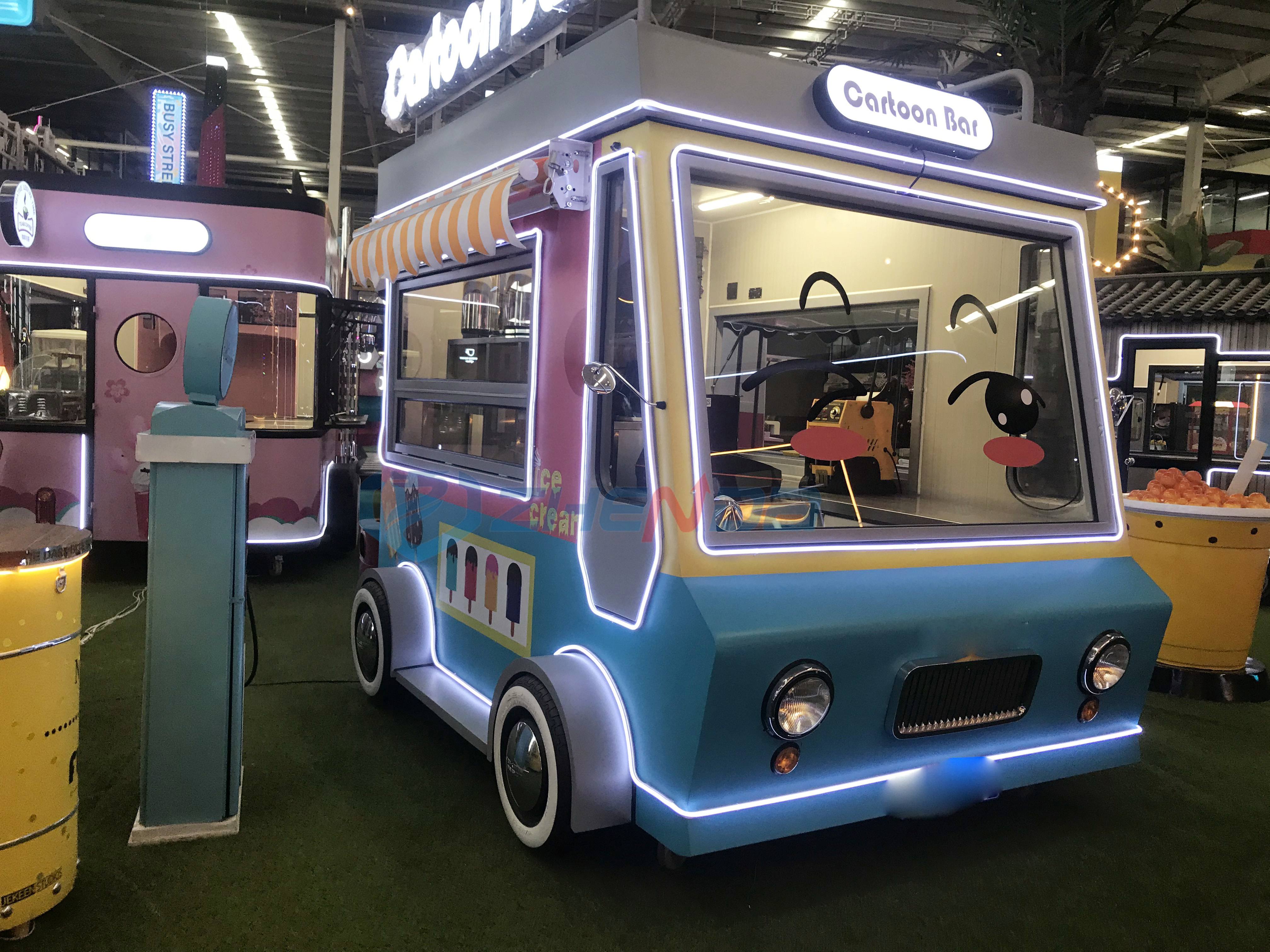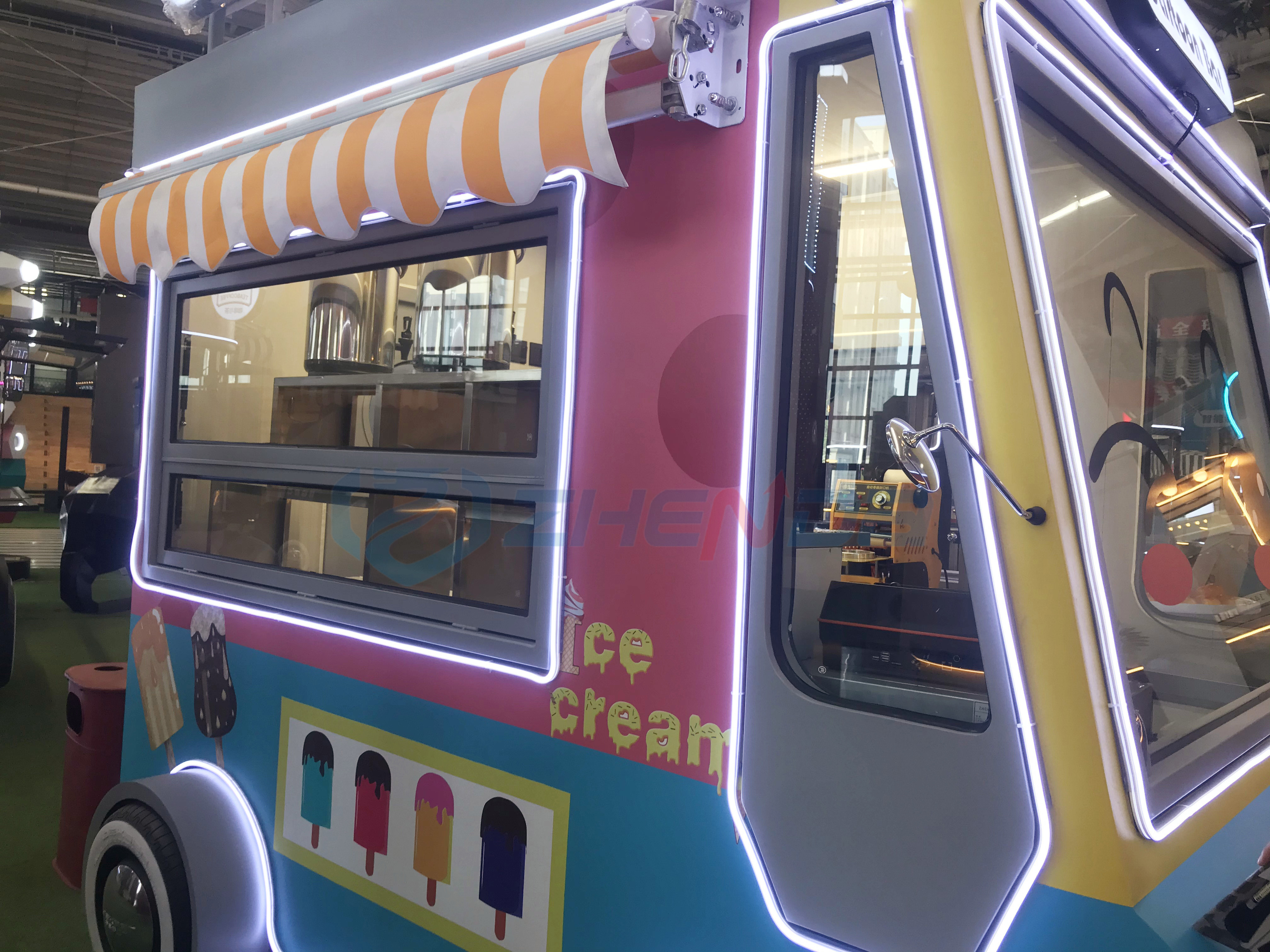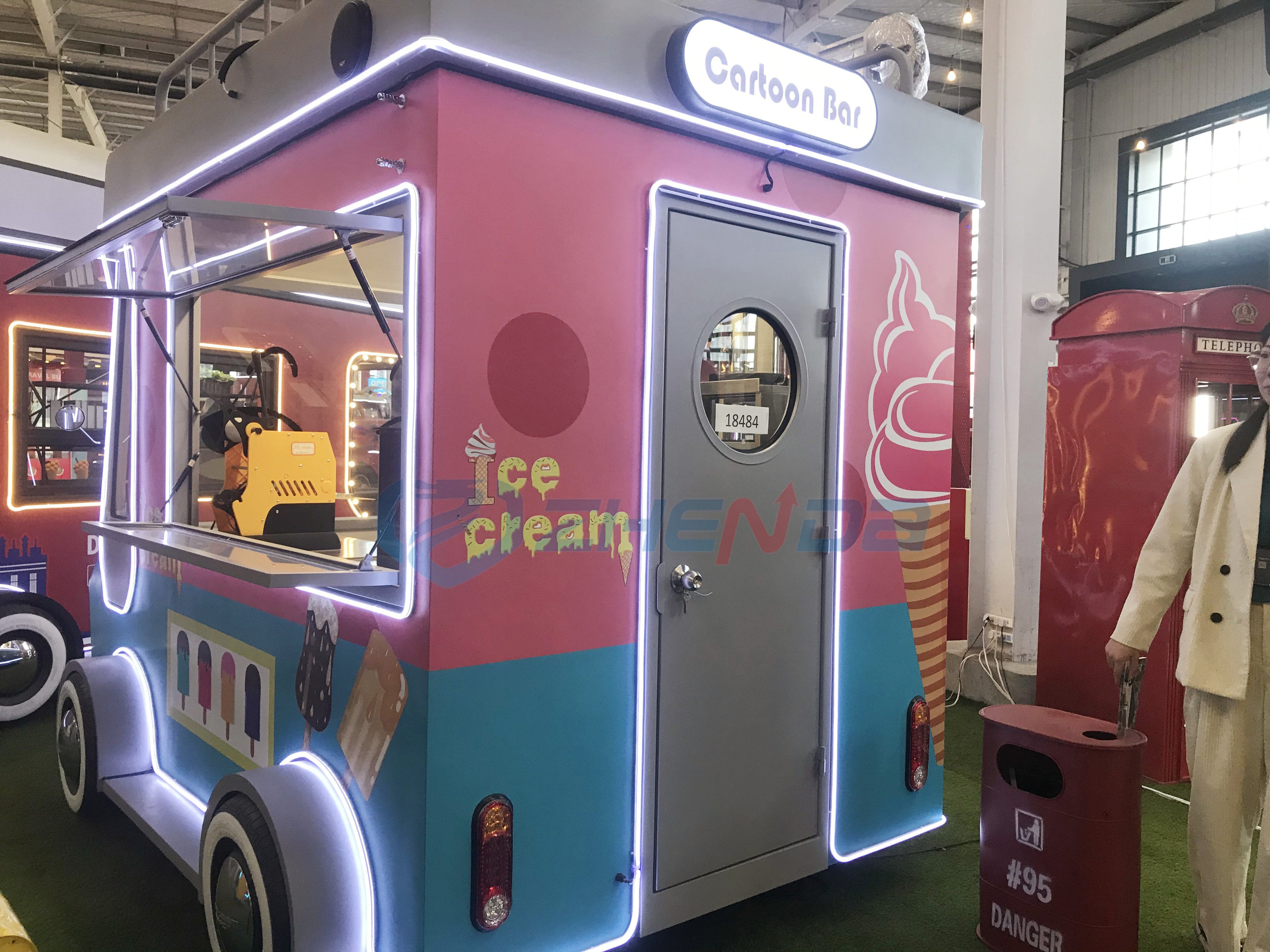 | wheel: | 4 road wheels | Mechanical function: | Ice cream/pizza/coffee/hamburger/snacks, etc. |