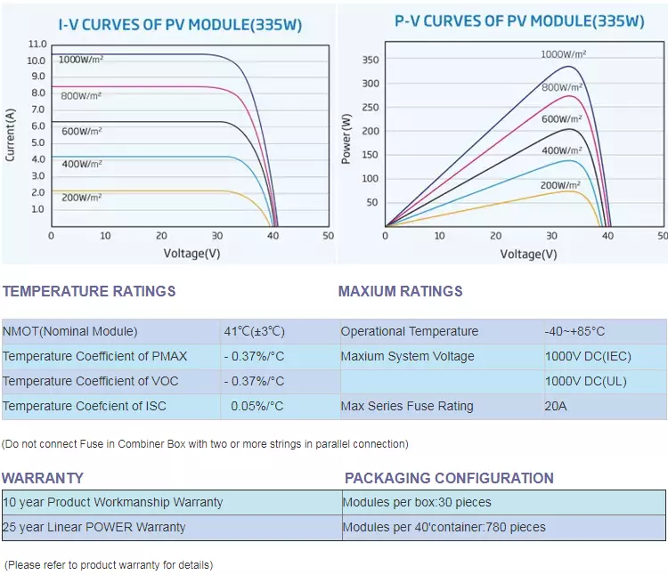 | Junction Box: | IP67 rating | cable: | 900mm photovoltaic cable |