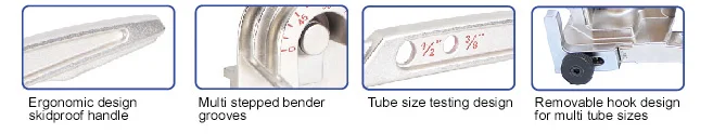 Calibrated markings for making accurate left-hand,right-hand,and offset bends 180°start requires less effort.Makes bending fast and easy.