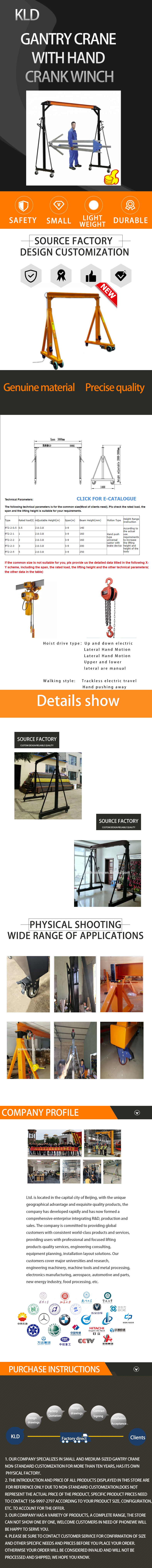 Aluminum alloy gantry crane jib crane electric chain hoist