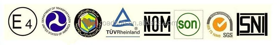 ECE, S-MARK, REACH, ISO9001, ISO/TS16949, DOT, GCC, CCC, SONCAP, PVOC, NOM, INMETRO, SMARTWAY, EU EUE, etc.
