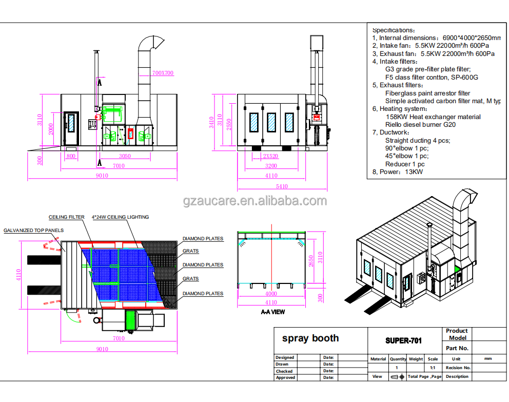Dimensions | 7010×5410×3410 mm (length*width*height) |