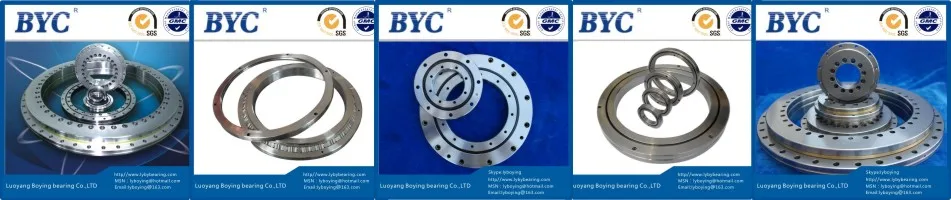 Luoyang BoYing Bearing Co., Ltd,(BYC)is a professional manufacturer of high precision bearings, The main products of our company are crossed roller bearings, YRT rotary table bearings, crossed tapered roller bearings,cylindrical thrust roller bearing. The leading products include crossed roller bearing RB, RE, RU,RA,CRBC, CRBH, XSU, SX series, rotary table bearings YRT, YRTS,YRTM,ZKLDF series, crossed tapered roller bearing JXR, XR series, almost whole range of precision bearings. The accuracy grades are P5, P4, P2, and the size of inner ring are ranging from Φ50mm --- Φ1300mm. Our products are optimal for applications such as joints and swiveling units of industrial robots, swiveling tables of machining centers, precision rotary tables, medical equipment, measuring instruments and IC manufacturing machines,mainly to replace the imported bearings. Also, we can design,choose and manufacture non-standard,large size precision bearings as customer requested.