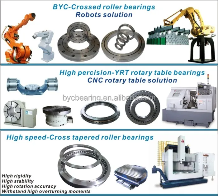 BYC Boying Bearings can produce percision crossed roller bearings and YRT rotary table bearings as THK/INA/IKO quality,which percision grade reach to P4/P2.