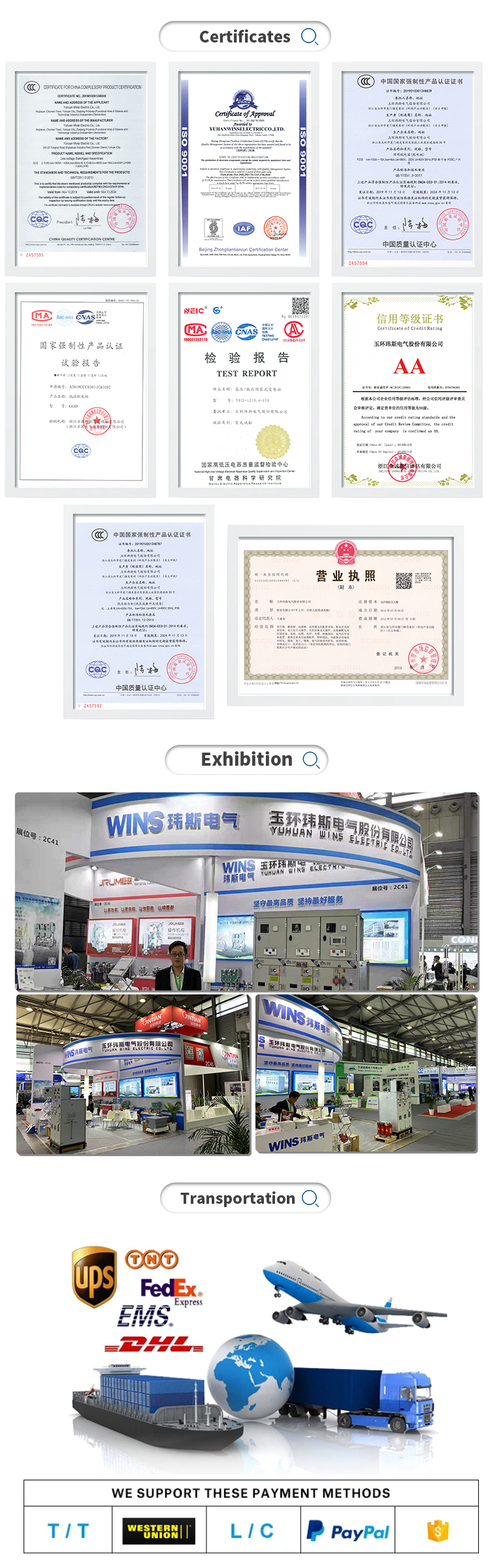 Accepted payment methods: T/T, L/C, cash;