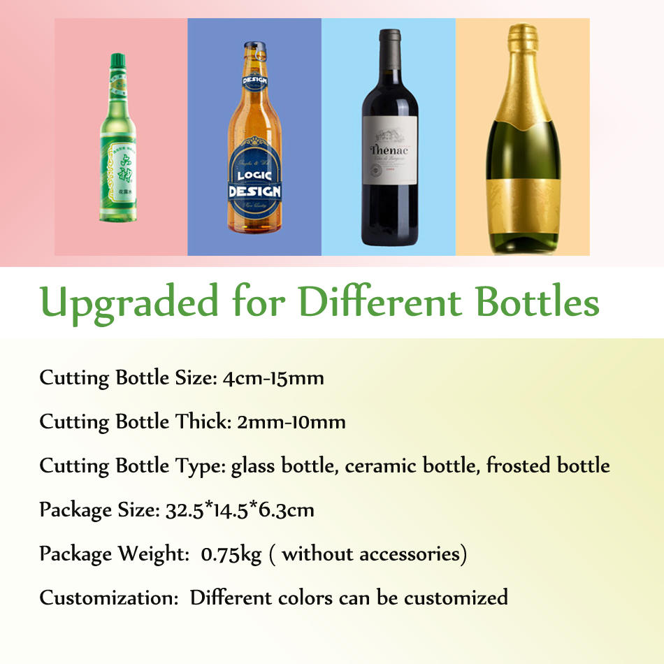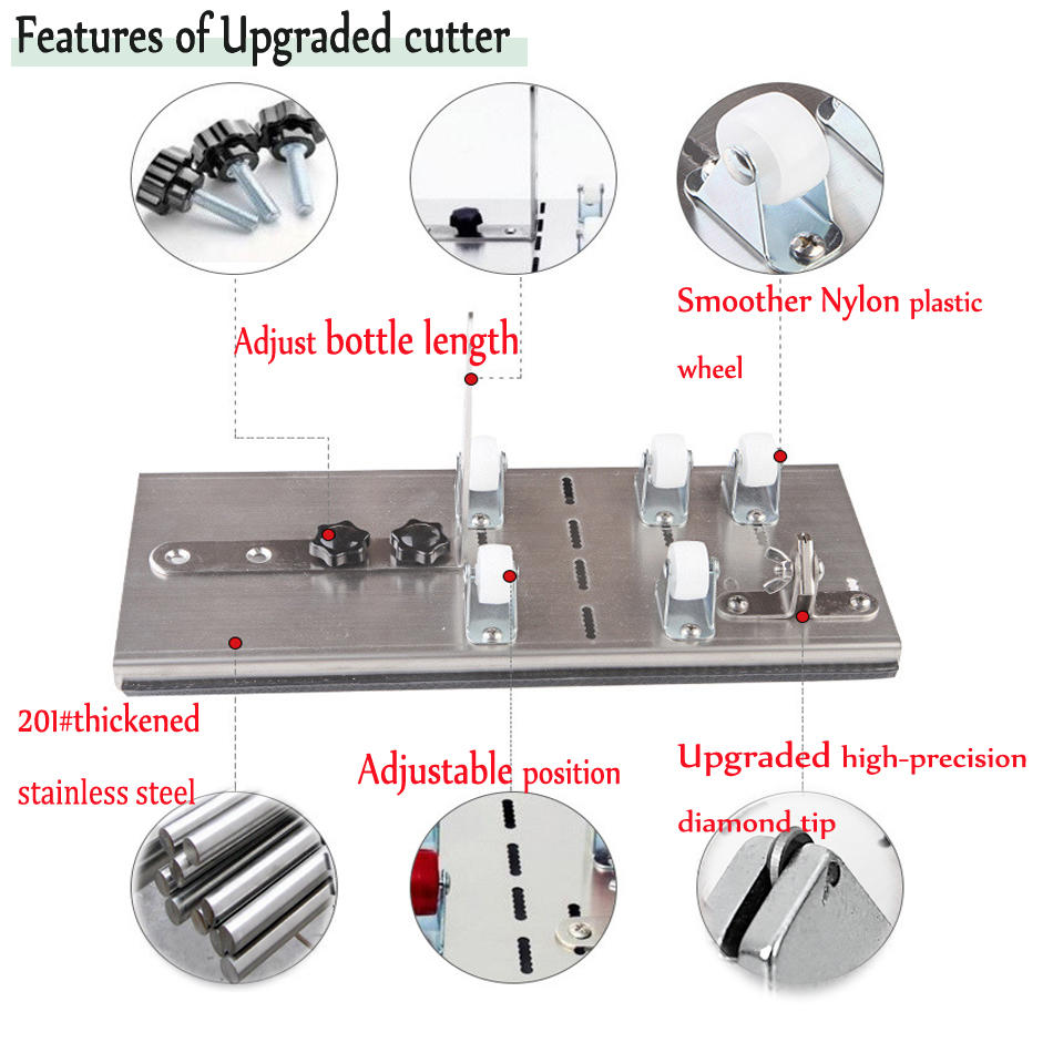 Unlike other products that only have 3 adjustment scales, ours can adjust any scale, the length of the cutting blade to the support plate can be adjusted from 3.1"-11", which is more stable when cutting bottles.