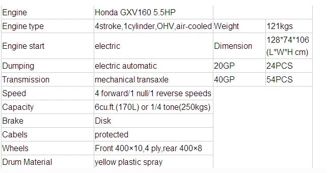 Farm trolley powered by 4hp gasoline engine BY160V-60 can load 100kgs(0.1ton) or 85L stuff, very useful in agriculture, gardening and light construction sites, carrying crops, fertilizers, plants, concrete, bricks, wood, sand etc. There are four wheels. It performs well even on muddy job sites. With a width of 80cm, it can pass through most doors. It is powered by a 4hp gasoline engine, which makes the operator feel easy.