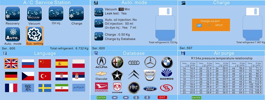 1) Fully automatic in recovery/vacuum/oil injection/charge