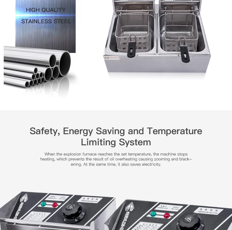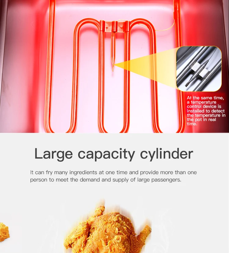 Features of frying machine: clean, hygienic, easy to operate and beautiful in design.