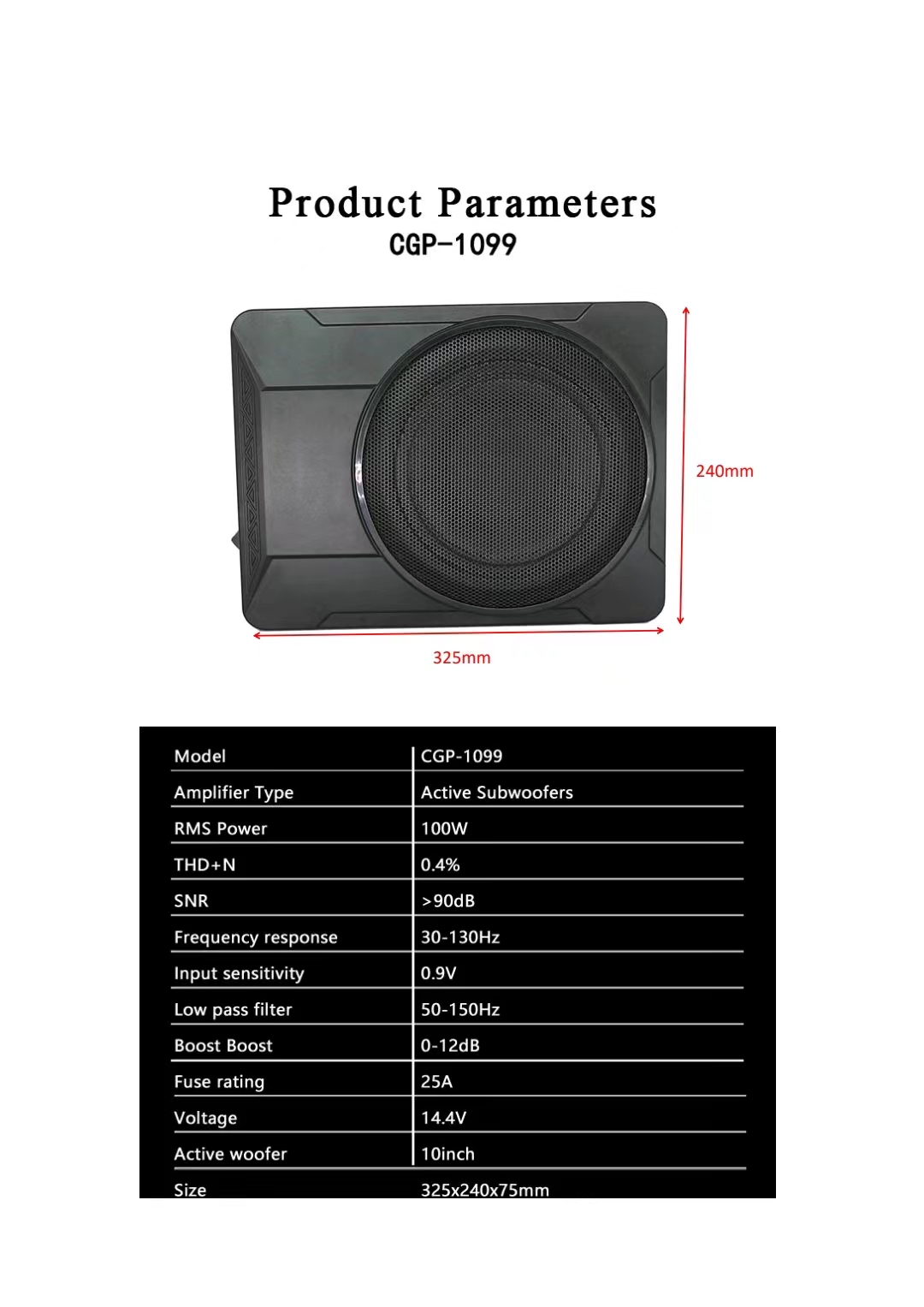 ◆100W 10" Activebass◆2×RCA audio (low level) input