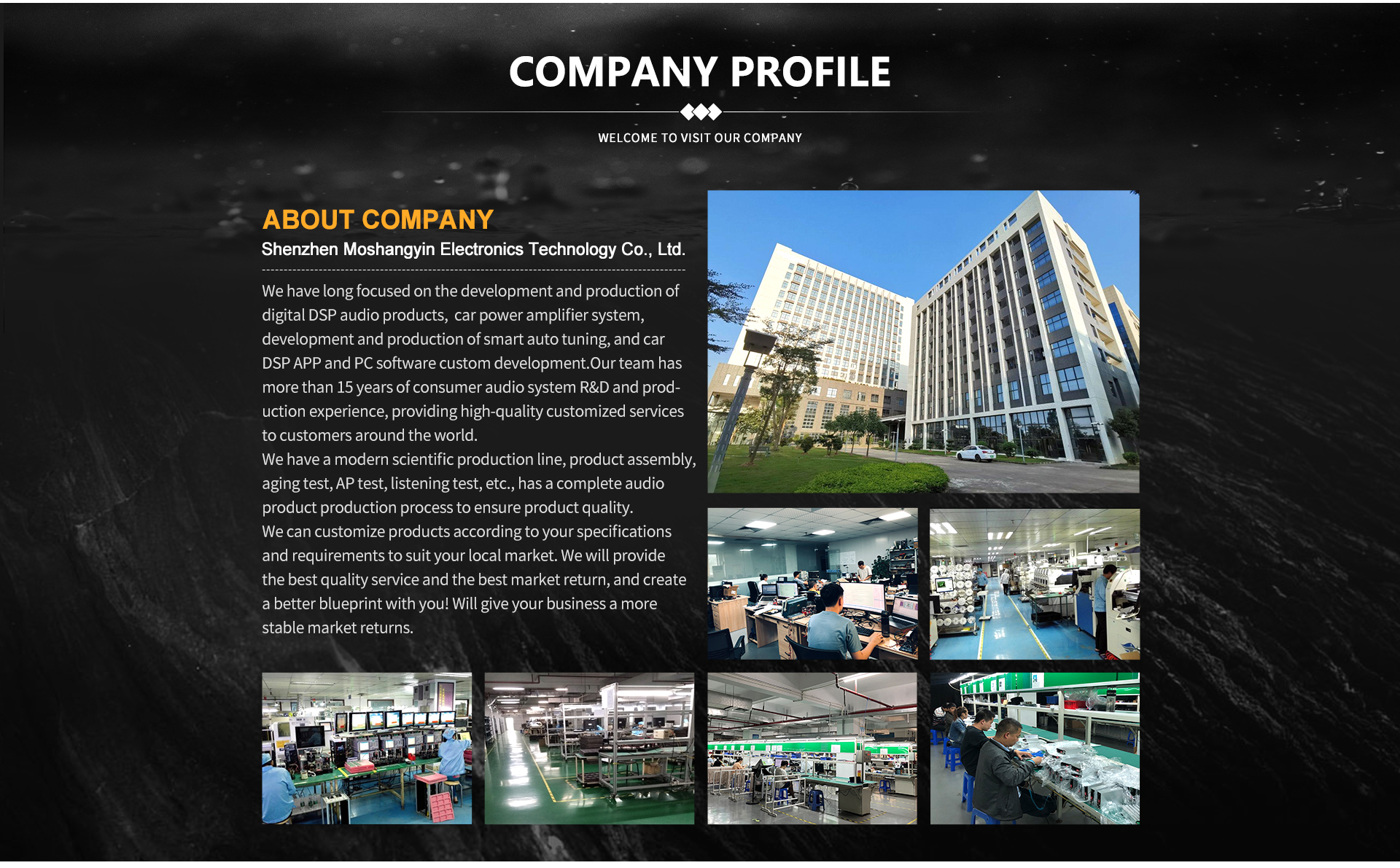 We focus on high-quality audio system design, such as car DSP power amplifier system, home audio, portable audio, etc. We have more than 10 years of audio R&D and production experience for Cirrus Logic, ADI and Qualcomm/CSR BT audio solution companies.