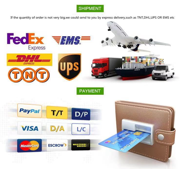 Q1. How to get the price?- We usually quote within 24 hours after we get your inquiry (except weekends and holidays). If you are very urgent to get the price, please email us or contact us in other ways so that we can provide you with a quotation.Q2. Can I buy samples to place an order?-Yes. Please feel free to contact us.Q3. What's your delivery time?-It depends on the order quantity and the season you place the order. Usually we can ship within 2-5 days, and about 10-15 days for large quantities.Q4. What is your payment term?-T/T, Western Union, MoneyGram, PayPal and Alibaba Direct. This is negotiable.Q5. What is the shipping method?-It can be shipped by sea, air mail or express (EMS, UPS, DHL, TNT, FEDEX, etc.). Please confirm with us before sending the order.Q6. How do you make our business long-term and good relationship?-1. We keep good quality and competitive price to ensure our customers benefit; 2. We respect every customer as our friend. If there is any quality problem, please feel free to contact us.