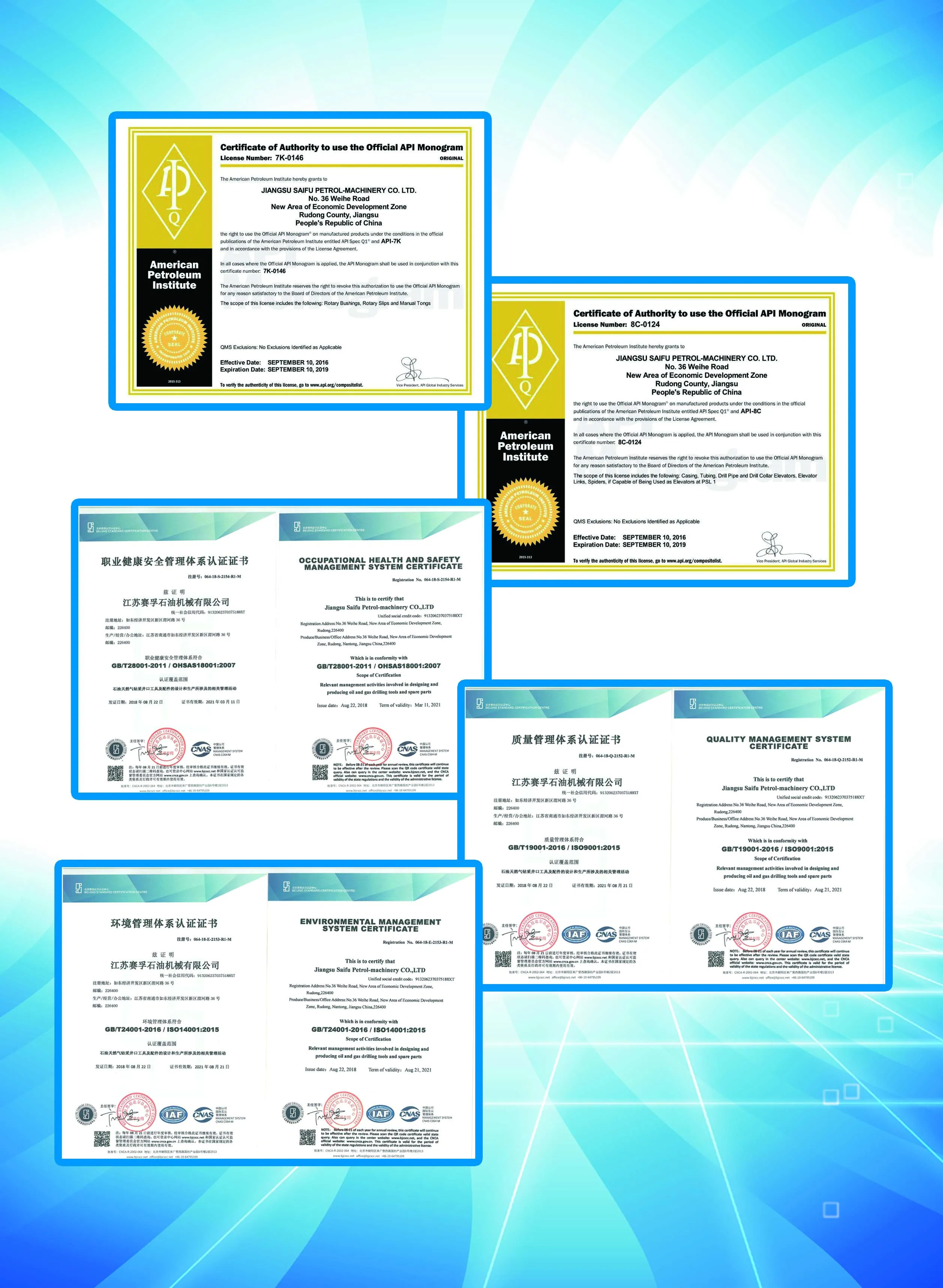 | Certificate: | API 8C; | Applicable Industries: | drilling tools; |