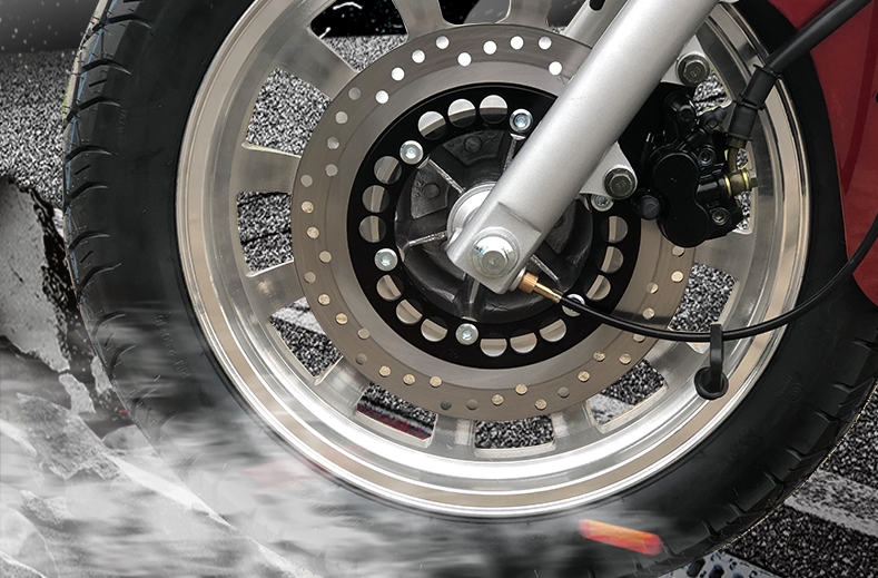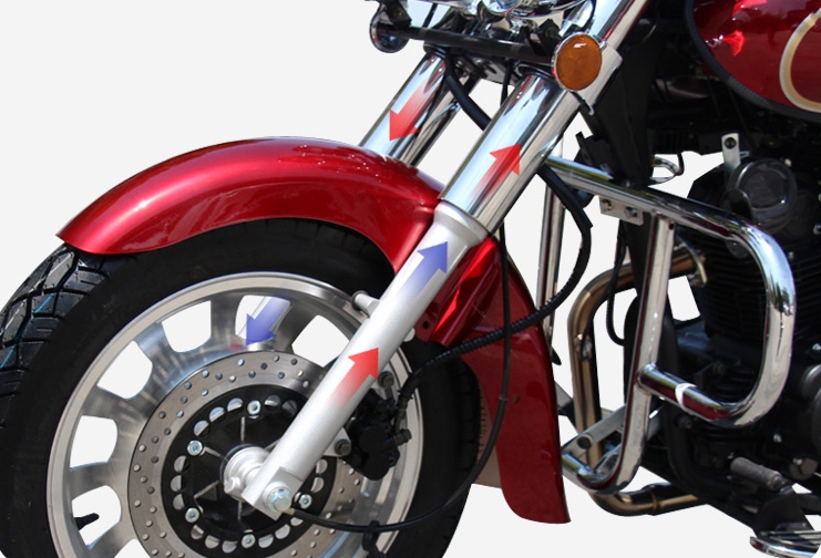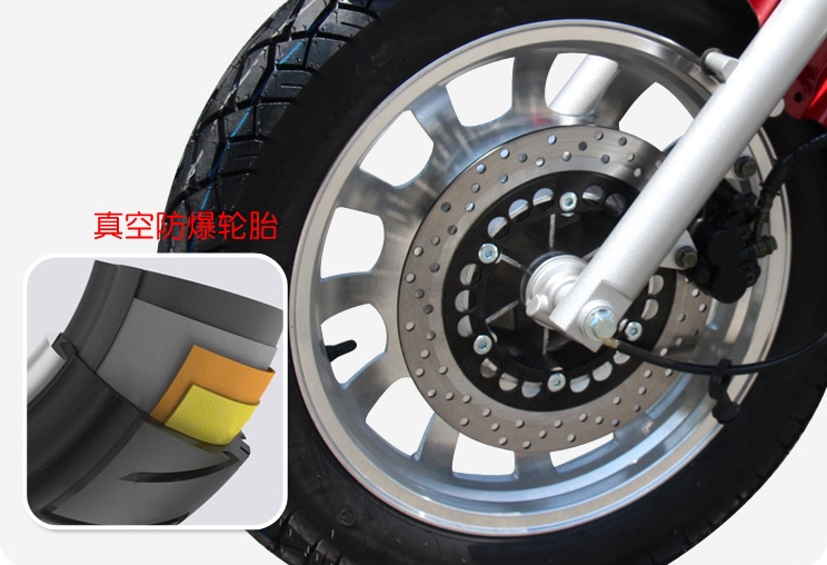 The front shock absorber adopts a telescopic sleeve hydraulic shock absorber, which is matched with a large disc brake to ensure riding