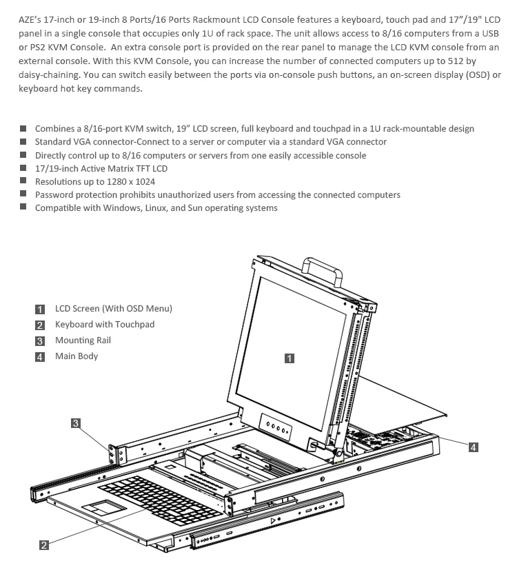 | RMCON1716 | 1U 16-Port Rackmount KVM Console for Server Rack-17 inch |