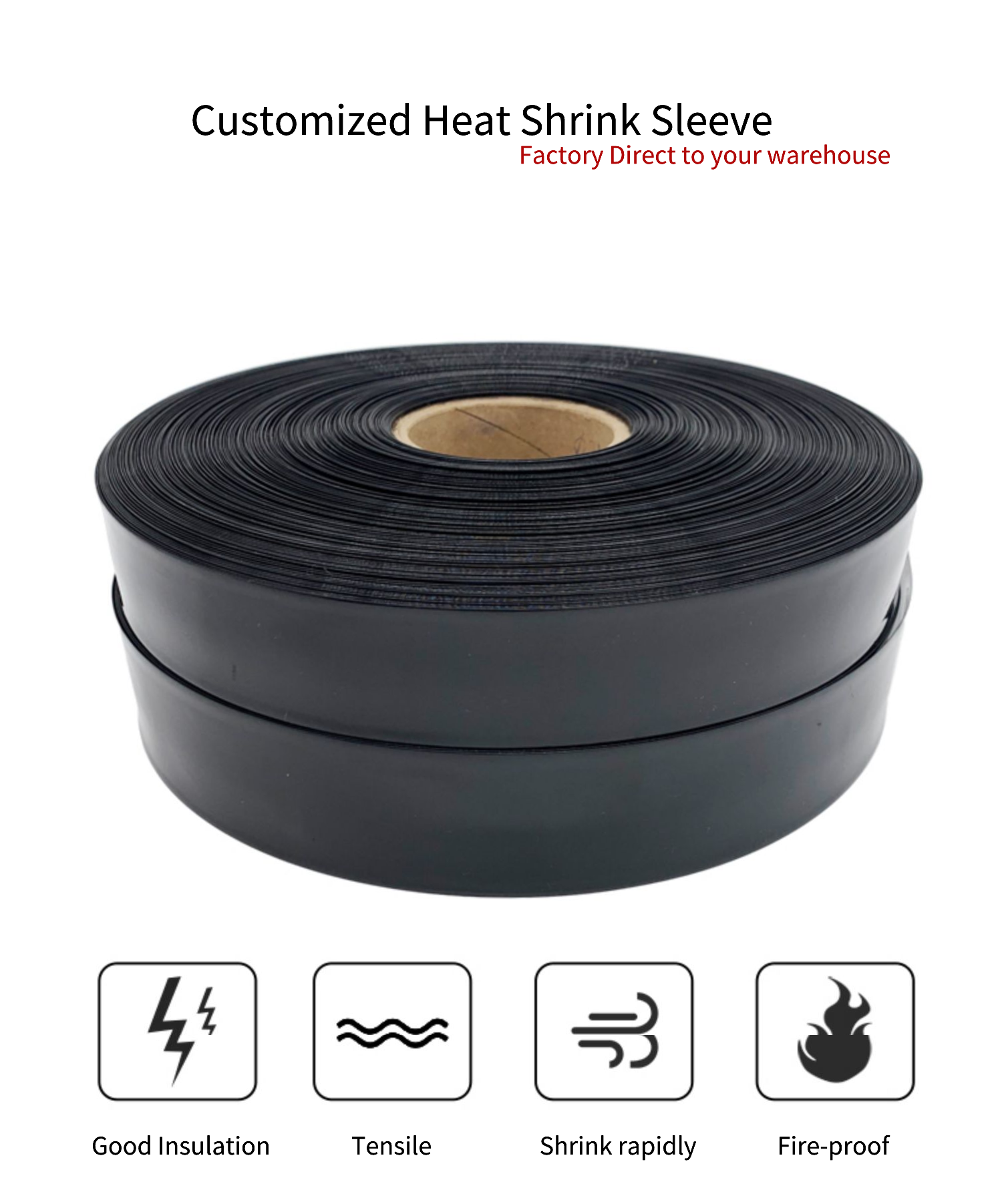 PVC heat shrinkable sleevesomething speciall functionShrinks when heated. It can shrink when heated above 98°C, which is convenient to use. It has the advantages of excellent flame retardancy, environmental protection, insulation, softness, stable performance, low shrinkage temperature, and fast shrinkage. The product has good high temperature resistance and no secondary shrinkage. It plays the role of anti-counterfeiting and beautifying the packaging, and plays the role of insulation, moisture-proof, anti-corrosion and dust-proof for the wrapped goods. Therefore, it is widely used in the casing of electrolytic capacitors, inductors, various rechargeable battery cells, combined packaging, curtain rods, shower curtain rods, hanging rods, drag rods, brooms, tool rods, telescopic rods, garden tools, supports, etc. pole etc. It can also be used for the identification of copper bars, connectors, and wiring harnesses of low-voltage indoor busbars, and insulation coating. High efficiency, less investment in equipment, and low overall cost. Lighting, LED pins, guitars and packaging bottle packaging