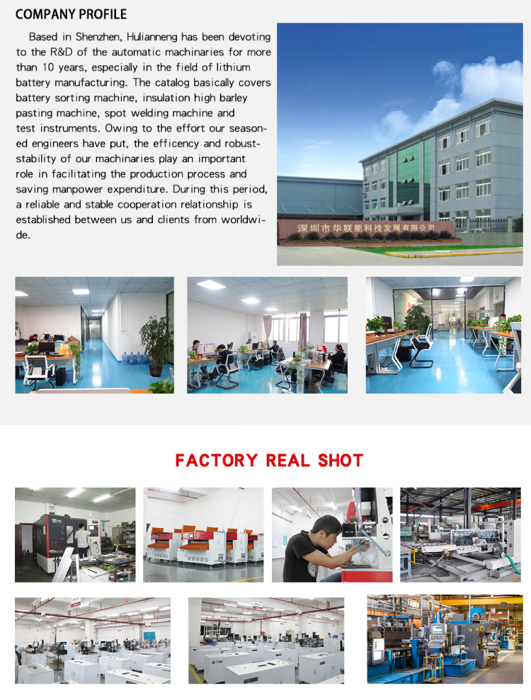 As a combination of manufacturer and trading company, we have provided one-stop material and equipment solutions for battery pack assembly lines for more than 12 years. One factory in Shenzhen for automatic and semi-automatic equipment, and another one in Dongguan for mass production of insulation materials and ABS PVC materials.Welcome to visit our factory or video call at any time to understand our real production process.Our customers come from all over the world and have influence in Europe, Southeast Asia and the US market. We have great strengths in the following areas:Nickel strip/gasket/fish paper- Highly customizable according to configuration.Battery sorting machine-2ch, 6ch, 10ch, 20ch. Prismatic, polymeric and cylindricalSpot welding- Manual / Autobattery tester- Battery comprehensive tester, charge and discharge tester, internal resistance tester, battery capacity tester, protection board tester