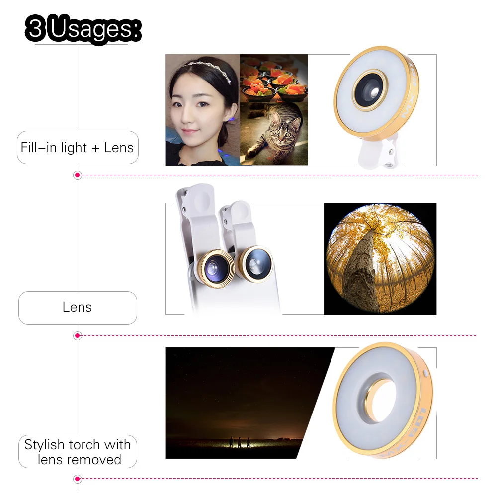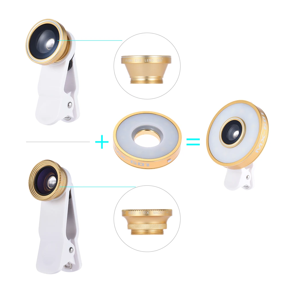 6 in 1 Universal Multi LED Selfie Flash Light Wide Angle Camera Clip Lens