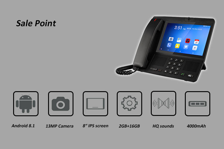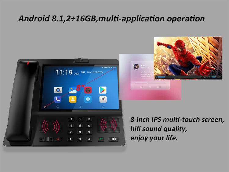 exhibit | 8" IPS TFT, 1280*800 pixels 5-point capacitive touch screen Video codec: 720P H.264@30fps |