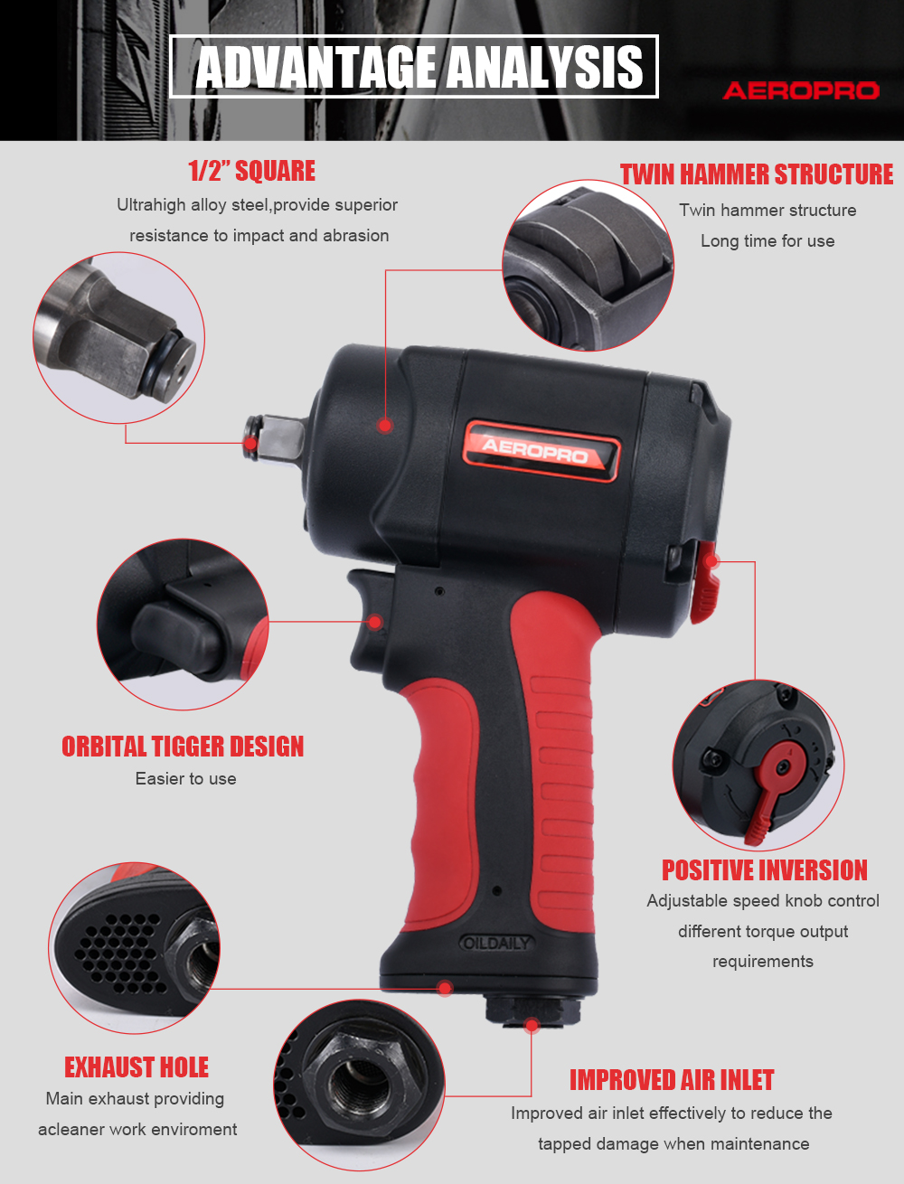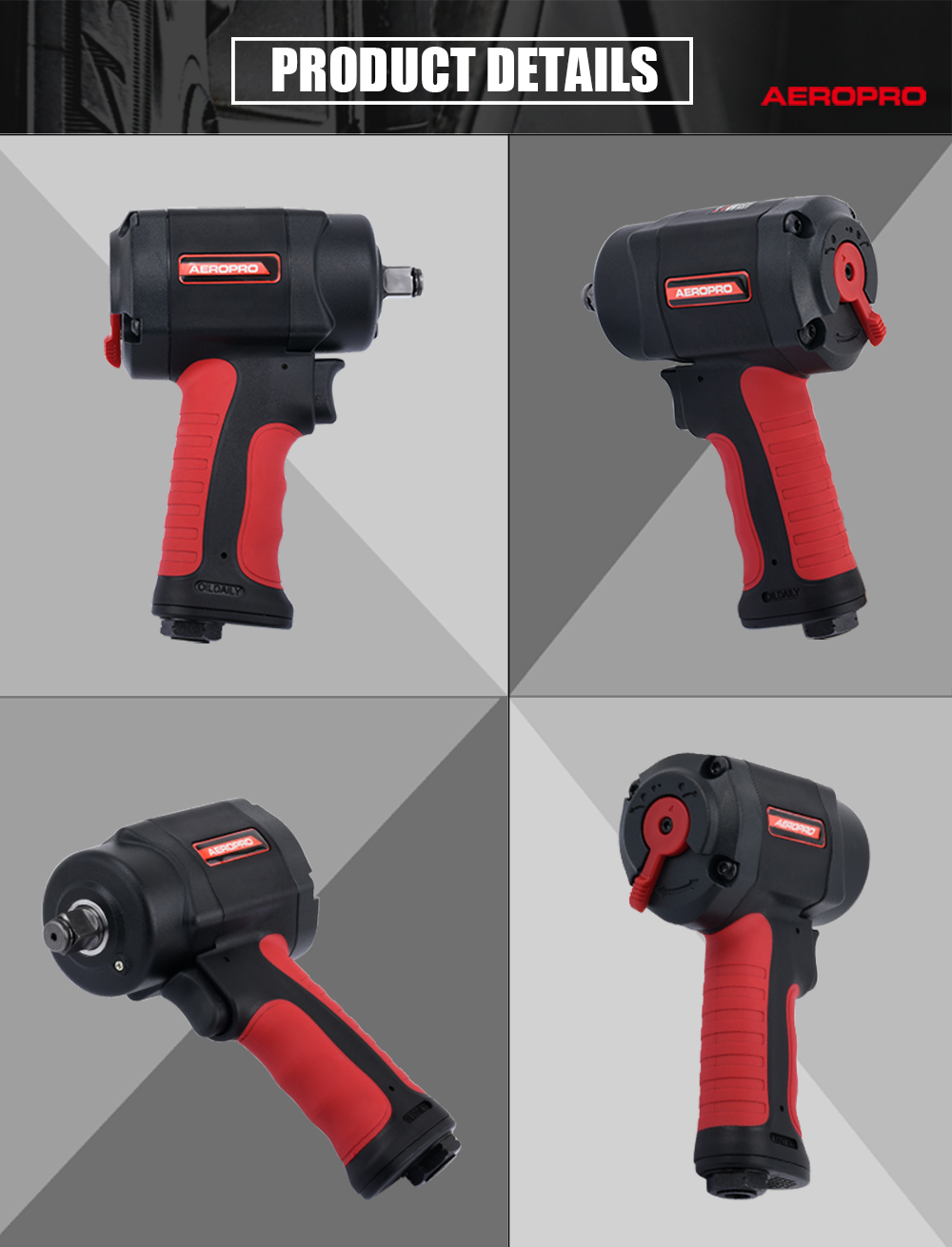 Aeropro Heavy Duty Air Tools Mini 1/2 Air Impact Wrench - Giant Hammer