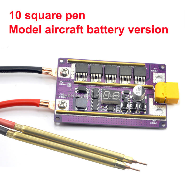 The version is: 1. Lead-acid battery version 2. Model airplane battery version 3. Car Entry Edition 4. Compatible version, 4 versions. Each version has 4 specifications! ! ! have: 6 square pens, 6 square pens (with protective case), 10 square pens, 10 square pens (with protective case). Special Note: Compatible version has three general power supply methods, lead-acid battery version, model aircraft version The battery version, the entry version can choose one of the power supply methods. 6 square pens can spot weld 0.05-0.2mm nickel-plated sheet, and 10 square pens can spot-weld 0.05-0.3mm nickel-plated sheet. This is a high-quality spot welding machine control board, high-power output design, 99 adjustable output power, more Precision welding, nickel/nickel plate can weld thousands of points continuously. Solder joints are accurate, Beautiful, support 0.05-0.3mm nickel, iron, stainless steel welding. This spot welding machine can be used for spot welding Welding of 14650/17490/18650/21700/26650/32650 cylindrical lithium batteries and nickel metal hydride batteries. feature: Using 5 MOS tubes, the maximum current can reach 2390A. High power output design, 99 adjustable output power, more accurate welding, thousands of points can be welded continuously On nickel sheet/plate. Welding is the principle of using high current and high temperature to rapidly melt and cool the nickel foil part. Equipped with 2 copper bars, which greatly increases the flow capacity. The solder joints are accurate and beautiful, and support the welding of 0.05-0.3mm nickel, iron and stainless steel. This spot welding machine can be used for 14650/17490/18650/21700/26650/32650 cylindrical lithium batteries and NiMH batteries Power supply: own power supply 1.1 Old lead-acid battery 12V20AH----100AH (new battery cannot exceed 45AH) and 20AHI old lead-acid battery cannot more than a year. The older it is, the greater its capacity. Or: 4-5 strings of super Farad capacitors Or: Macromonomer 2. Aircraft battery: 3S-4S 25C-60C output line to 6-10 square XT60 head 3. The 12V starter that can start the car normally must have an EC5 interface. 4. The compatible version needs to choose a power supply like the above three Prohibited use: switching power supply, transformer, charger, water battery, charging treasure, power spot welding machine, etc. Damage to the spot welder control board. Version: Lead-acid battery version Spot welding pen line: 6 square 25 cm or 10 square 30 cm (choose one) Spot welding thickness: 0.05-0.2mm for 6 square spot welding pens 10 square spot welding pen can point 0.05-0.3mm | ||||||||