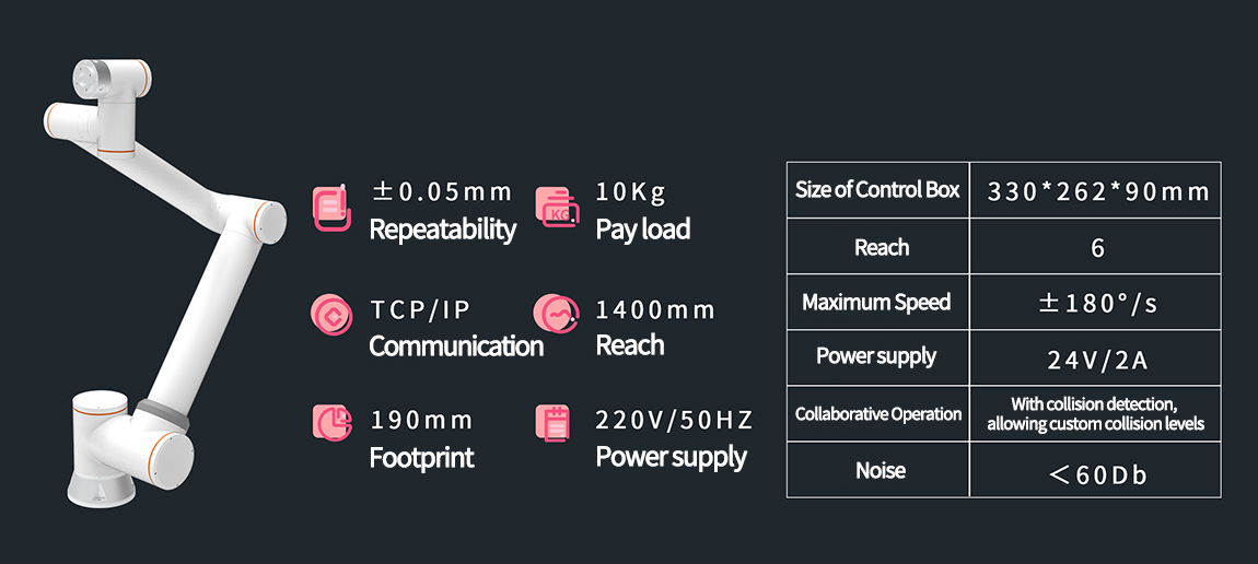 | Key words: | robotic arm | Working radius: | 620mm, 920mm, 1400mm optional |