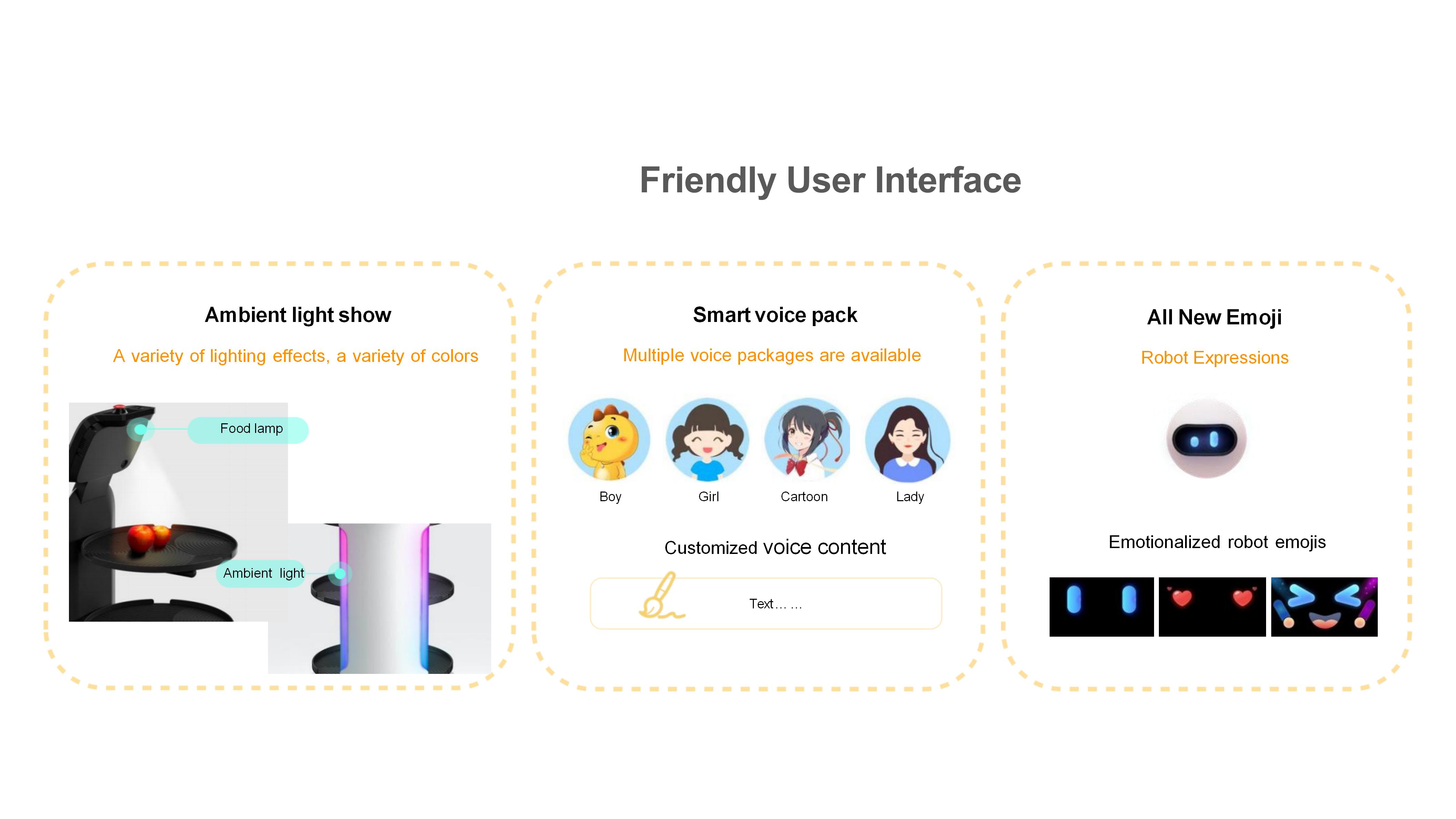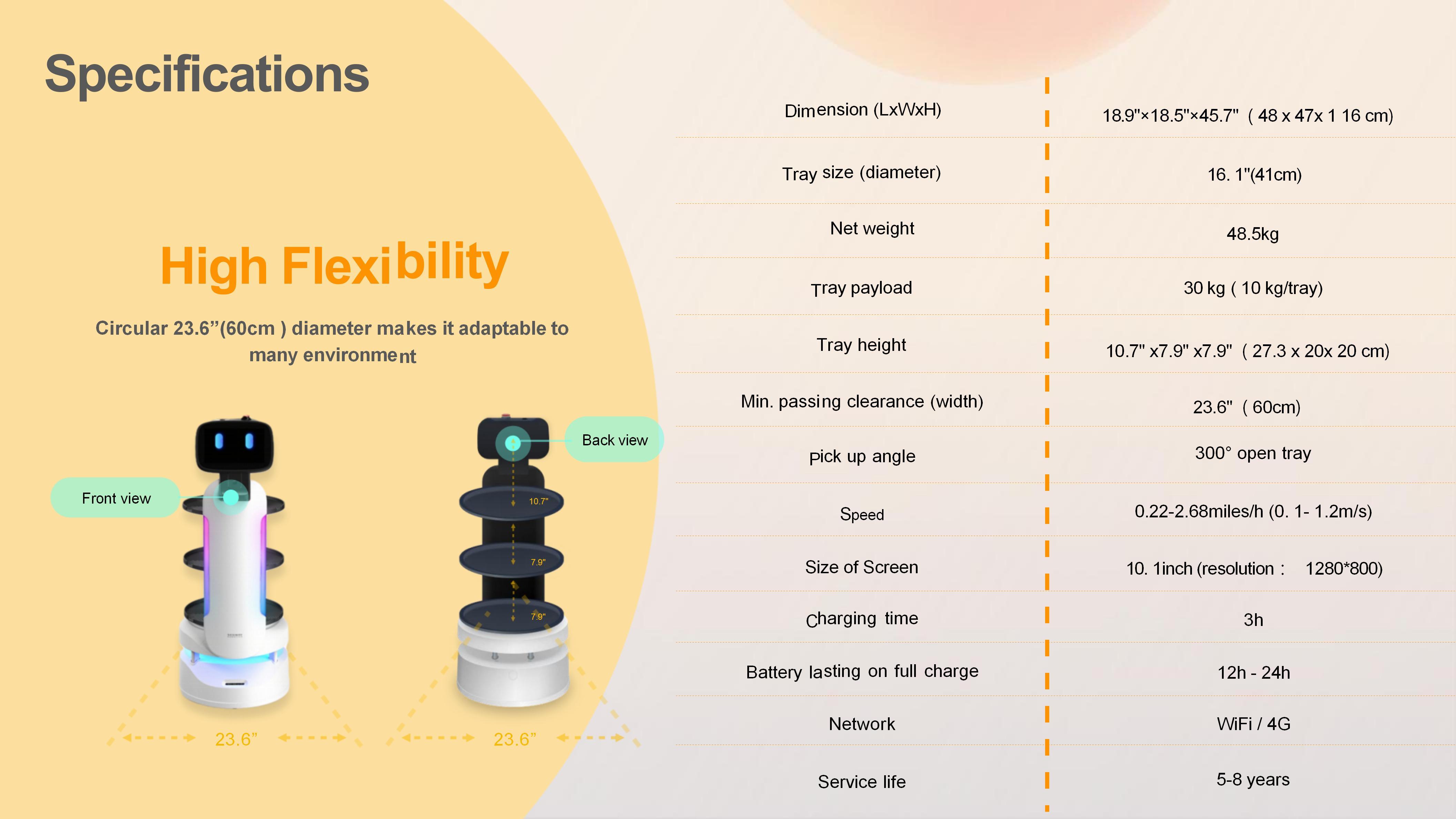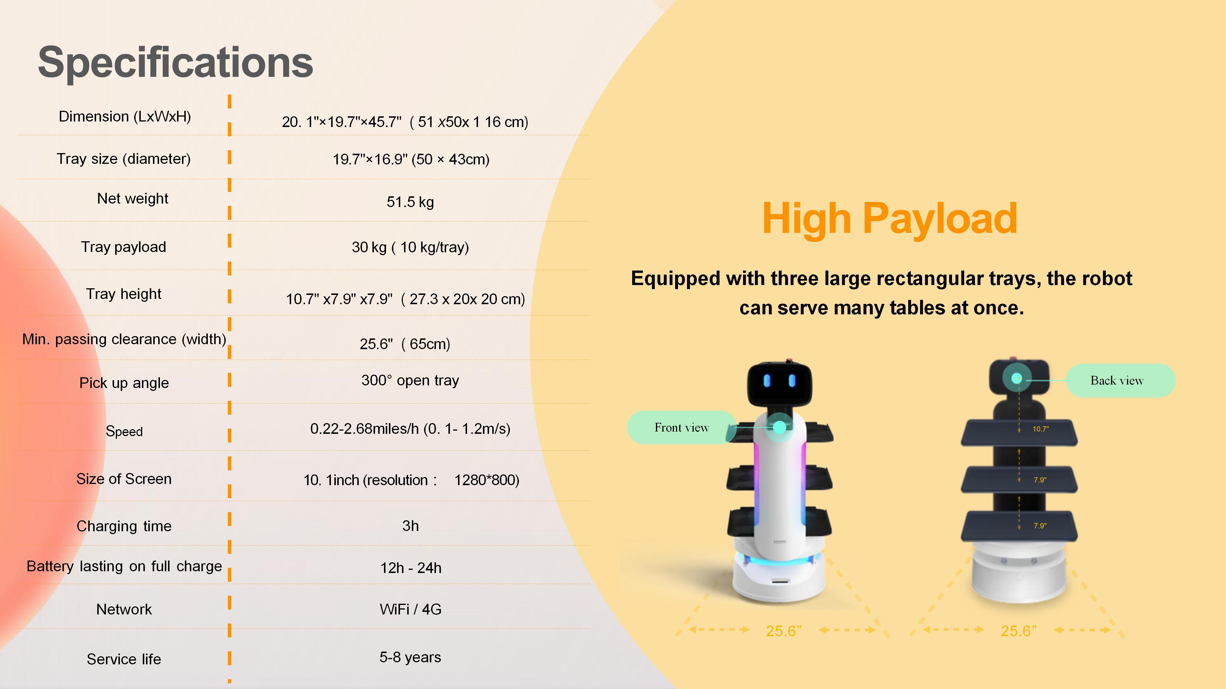 FAQ1. Solve problems such as difficult recruitment, expensive labor, and difficult management. Robots can perform multiple tasks without considering issues such as social security benefits. They are on call 24 hours a day to help restaurants optimize their personnel structure, improve service efficiency and save labor costs. 2. Reduce mechanical repetitive work and improve employees' sense of value. Giving low-value work to robots and allowing waiters to do a good job in customer service will not only help employees grow, but also increase customer repurchase rate and loyalty. 3. Create smart restaurants and increase restaurant popularity. Robots can create the freshest and most technological service atmosphere and dining experience for customers, promote restaurant brand communication, and thus increase restaurant popularity. 4. Ensure food hygiene and safety in restaurants Robots provide flexible covering accessories to reduce human contact, not only can keep food warm, but also more hygienic and safer. 5. Shipping method According to your needs and quantity, we will transport for you in the safest and most convenient way