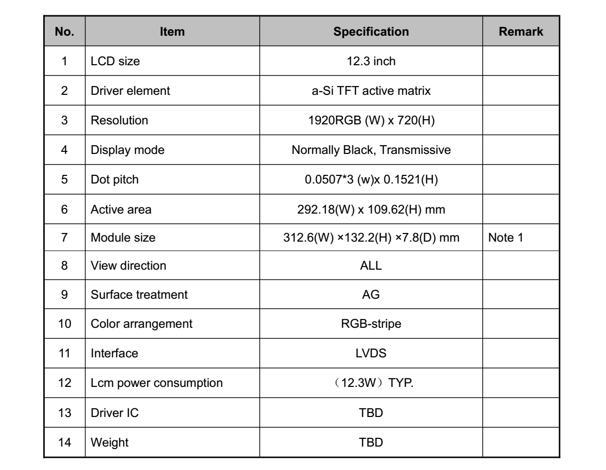 New car industrial high brightness 1000 cd/m2 super wide stretch 1920x720 lvds ips lcd monitor 12.3 inch tft with hdmi Absolute