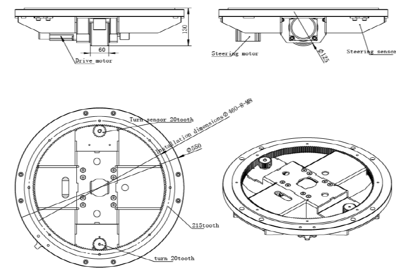 The total height of the 130 series driving wheel is only 130mm. It is currently the smallest installed driving wheel in the world, suitable for AGV trolleys that do not require high height.