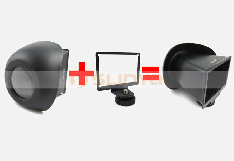 The LCD viewfinder consists of an anti-reflective coated 2.8X magnifying glass, soft rubber eyecup, plastic barrel and magnetic LCD screen mount. Installed on the liquid crystal display of the digital SLR, it can achieve more accurate focusing and increase the stability of handheld shooting. It can also be used by photographers who want to block out the light or check photos on the LCD monitor while shooting in live view mode.