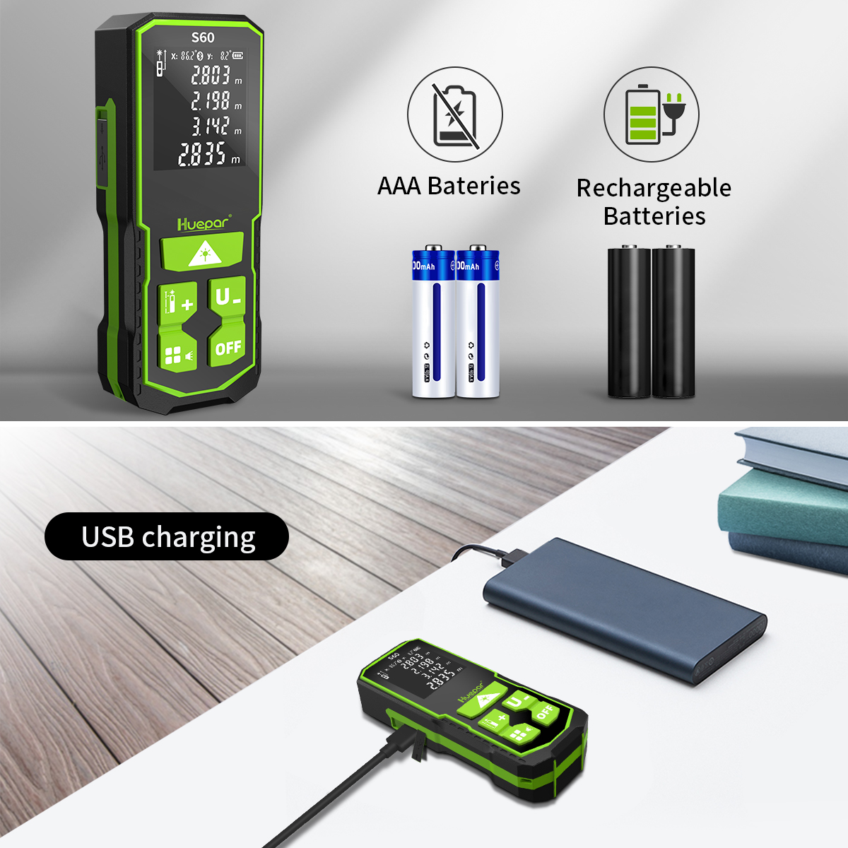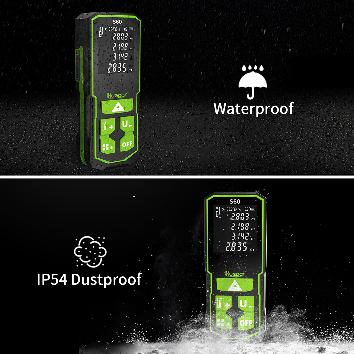 Huepar S60(S100/S120) laser rangefinder supports distance and continuous measurement methods..