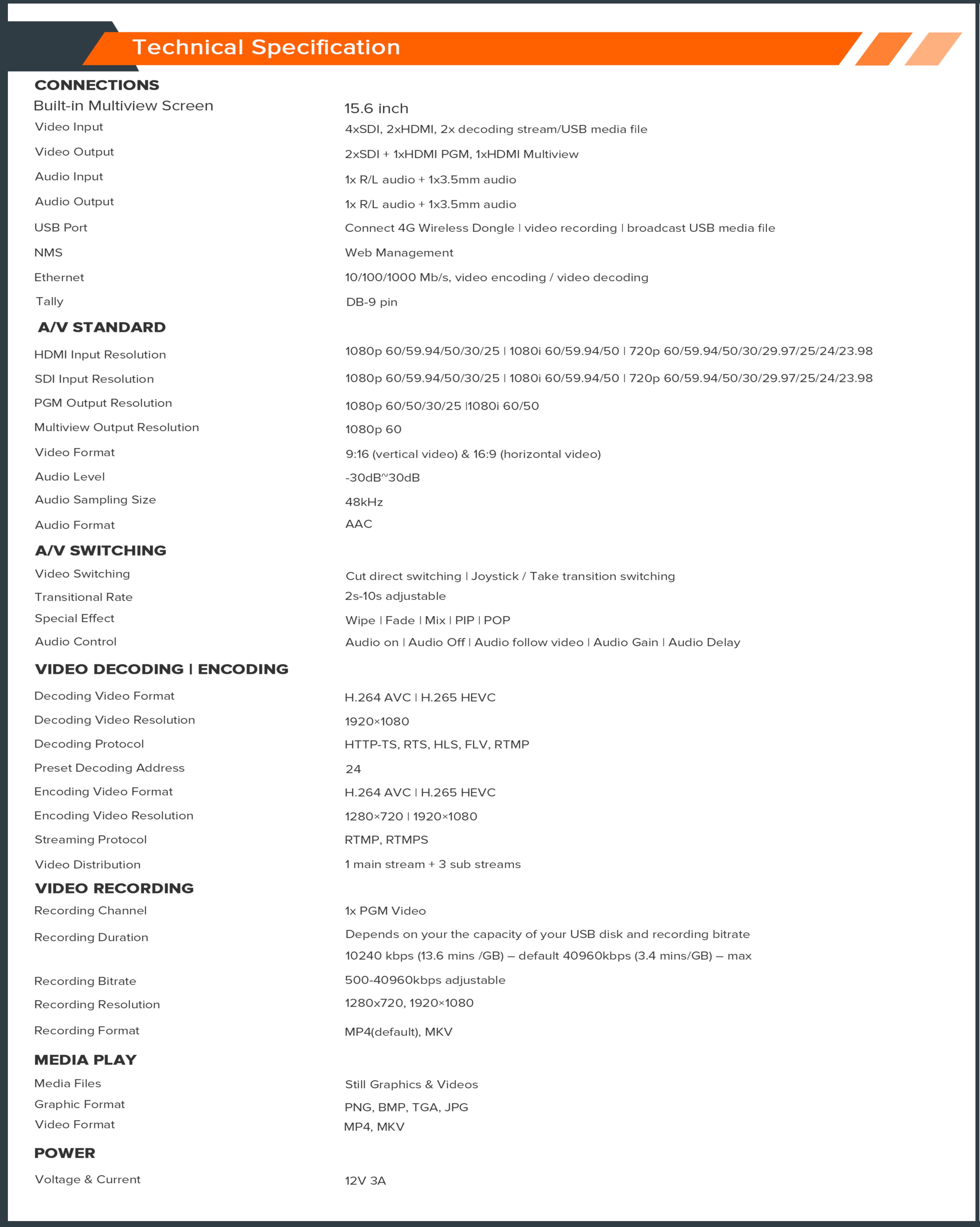 | solve: | 1080P 60fps | exchange: | PGM, CUT, automatic transition |