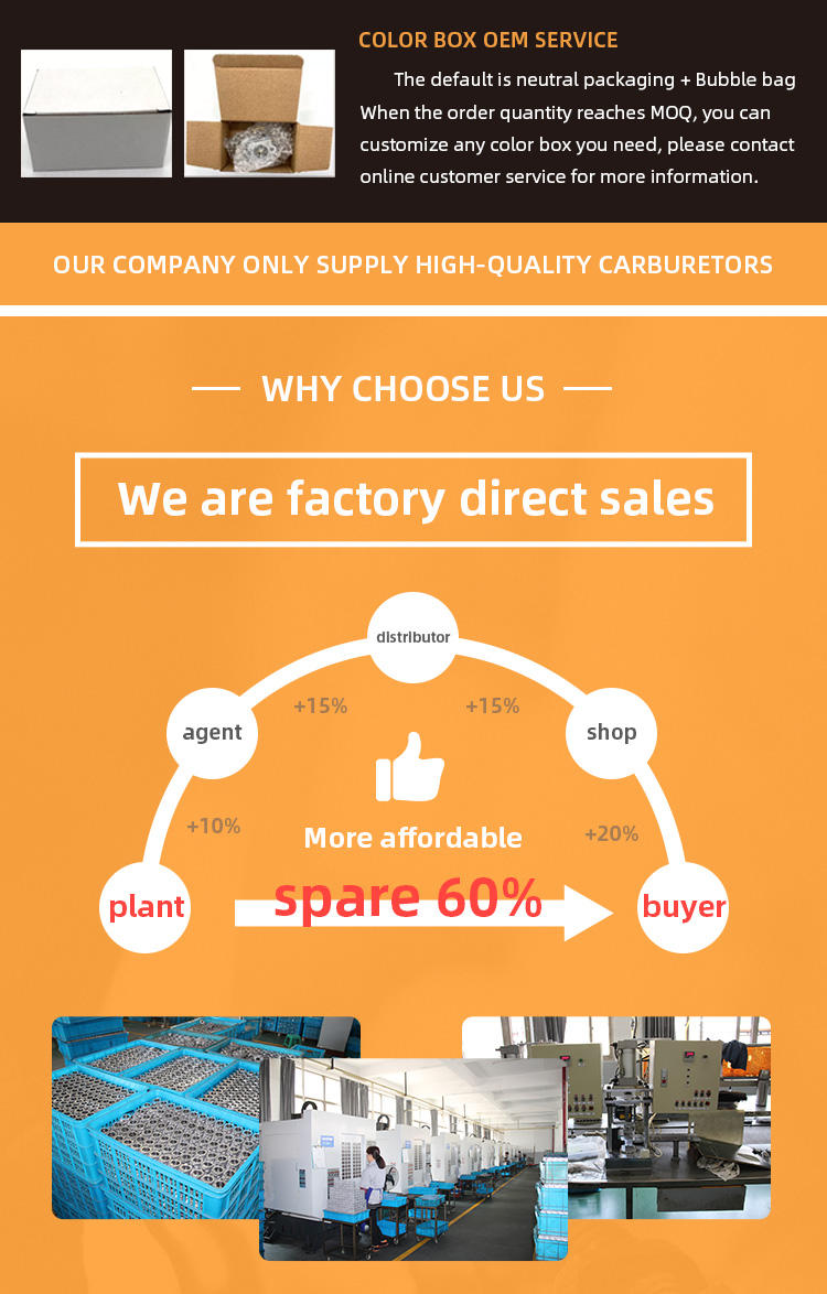 | Packaging Details: | Our carburetors will be packaged in a premium quality bubble bag and a sturdy white box. Available in 100pcs or 50pcs in high quality carton. |