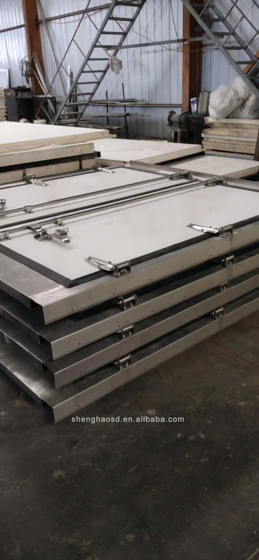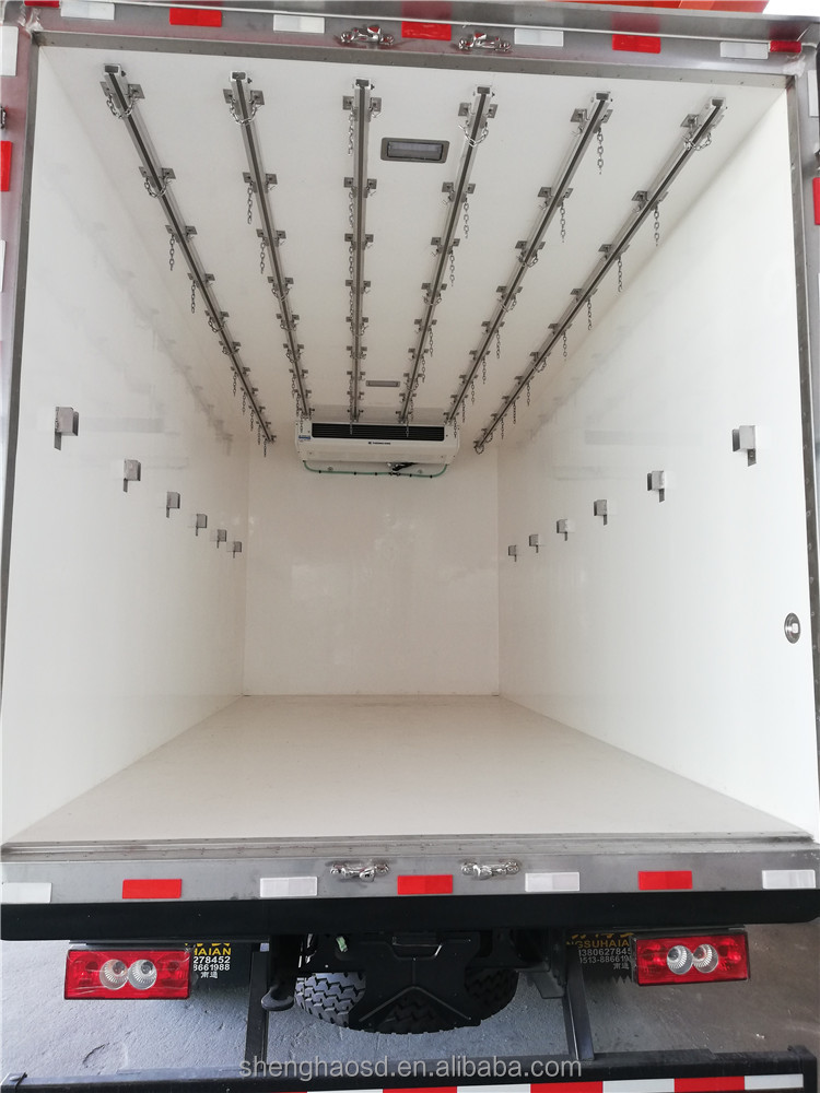 1. The advantages of the truck body 1). It is a fully enclosed structure made of FRP and polyurethane foam, the outside is glass fiber reinforced plastic, and the core is polyurethane foam 2). Light weight: 40% lighter than the car metal machine body. 3). Good strength and long life. 4). No corrosion, no pollution, salt water resistance, acid resistance, alkali resistance 5). The body panel adopts sandwich structure. 6). The thickness of the insulation layer is 50-80mm, which has good insulation performance. 1) Outer/inner skin is FRP panel 2) Polyurethane insulation, PU foam density 42-45kg/m3 3) 304 stainless steel lock, hinge, door frame, wrap corner 4) Aluminum alloy edge protector 5) EPDM rubber door seal 6) Thickness: 62mm, 82mm, 102mm or other special requirements, body size according to your requirements 7) Side door optional 8) Light weight: 40% lighter than metal body. 9) Better insulation: K value is less than 0.3w/m2k.. 10) High strength and long life: 5 times longer than metal body. 11) No corrosion, no pollution, salt water resistance, acid and alkali resistance. 12) Easy to assemble and repair on site. Our products can be transported in CBU(Completely Assembled) and CKD(Completely Disassembled) types in temperature range, -18°C--+25°C, special requirements up to -40°C Thickness 1) Front panel: 85mm 2) Rear Wall panel: 85mm 3) Side wall panel: 85mm 4) Top wall panel: 105mm 5) Bottom wall panel: 105mm 6) With this size, the car body can get the best cooling effect. But we can also change the thickness according to your requirement. Thickness range from 25mm to 150mm truck body, FRP truck body, FRP refrigerated truck body, FRP cargo box, FRP truck box, FRP insulated truck body, refrigerated truck body, refrigerated truck body, truck body panels, CKD truck body, refrigerated truck body , isolated truck body, isolated cargo box, truck box, truck box body, box truck body, truck body, meat transport truck body, truck cooler box, truck cooler box, refrigerated truck body ckd