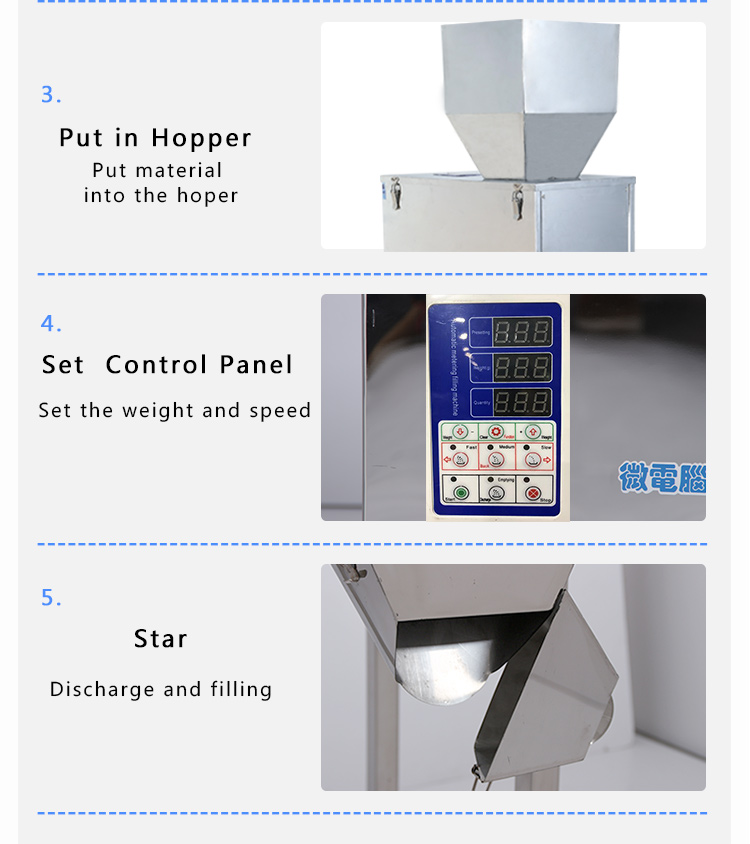 | product name: | 2 Hopper Large Capacity Granular Dosing Dosage Filling Machine | Dimensions (L*W*H): | 31*48*123CM |