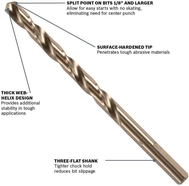 feature | 1. HSS tools are suitable for most general purpose applications, offering a combination of hardness and toughness abrasion resistance. 2. Precision ground points, flutes, bodies, clearances and bit diameters for maximum precision and performance. 3. Grinding flutes provide fast chip evacuation, maximizing precision and efficiency across the entire working surface of the drill. |
