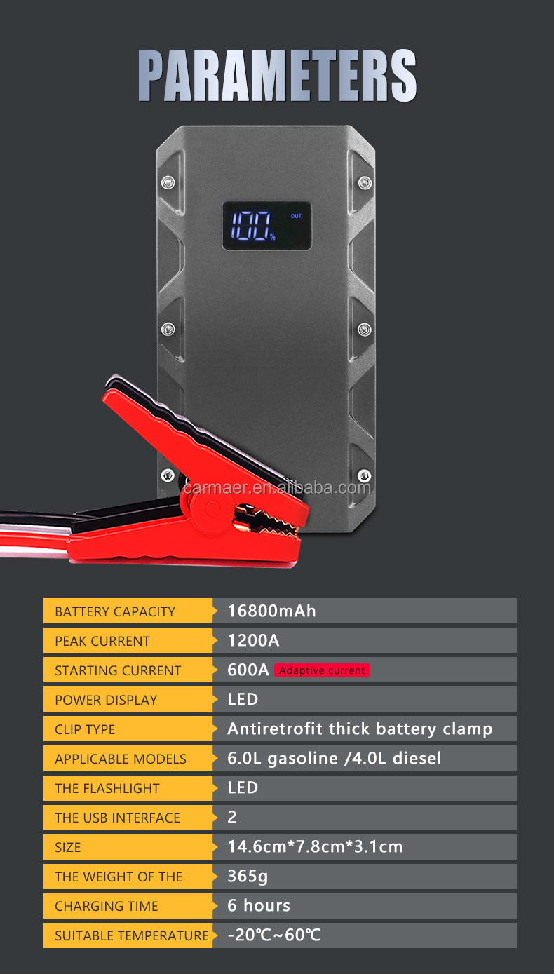 product name | 1200A 12V 16800mah high power jump starter car portable 12v jump starter power bank with LED light |