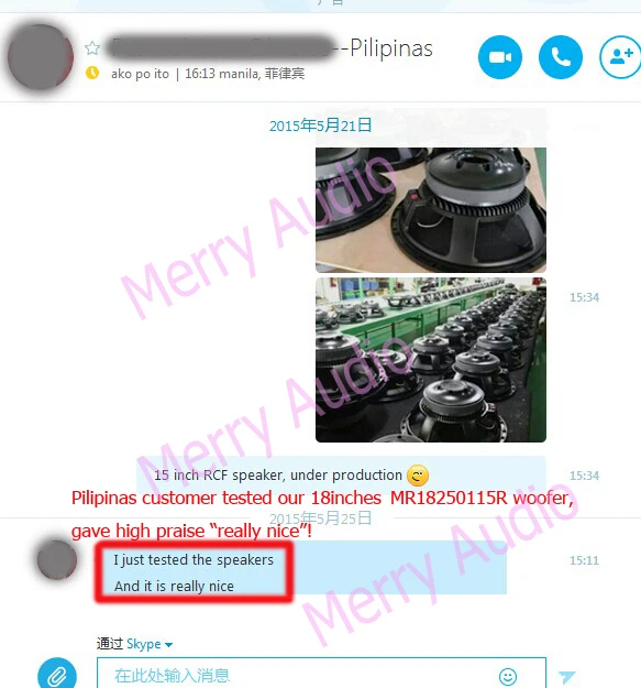 Guangzhou Merry Audio Equipment Co., Ltd. was founded in 2005 with a concept of “Customer first, reputation premier” to specialize in developing, manufacturing and OEM speakers. With over 10 years development, Merry Audio has become a leading professional speaker manufacturer. We have a 5,000 square meter workshop, introduced world level Class A technical equipment for producing, established 3 modern production lines and a R&D team consisted of 10 professional acoustic engineers who focusing on technical development and quality control.For future development, Merry Audio will continue to make progress in products and quality control, provide low frequency drivers that range from 6.5" to 21", as well as various line of high frequency drivers. We base on the “quality first, reasonable price” and develop the spirit "adopting the essence of all other company,strive for perfection", keep innovating to provide our customers speakers with more advance technology and better quality than other company.