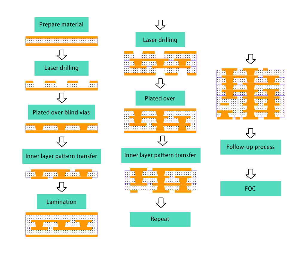 Due to design constraints, HDI PCBs have much higher routing and pad connection densities than conventional PCBs. The structure construction is explained below.